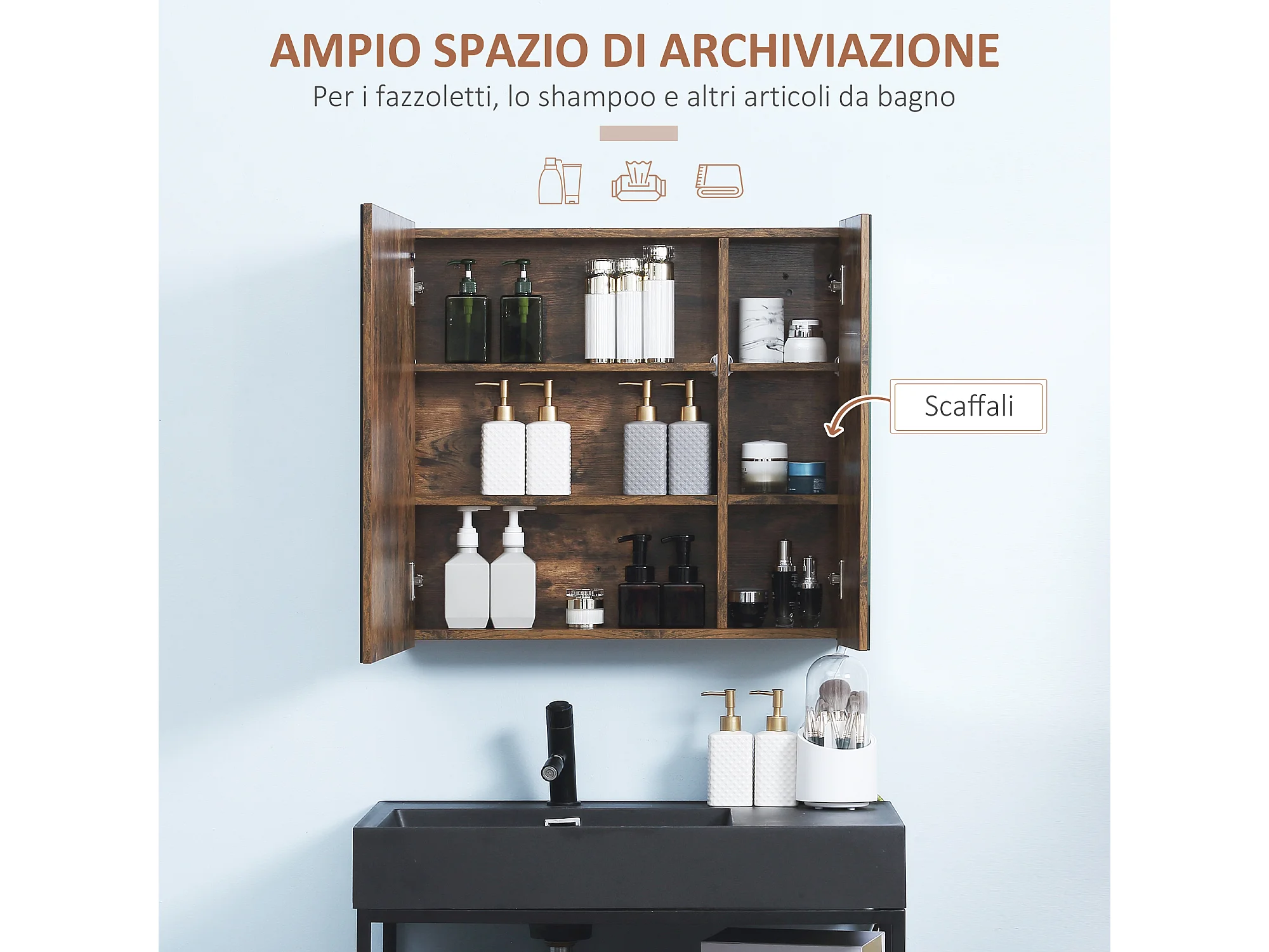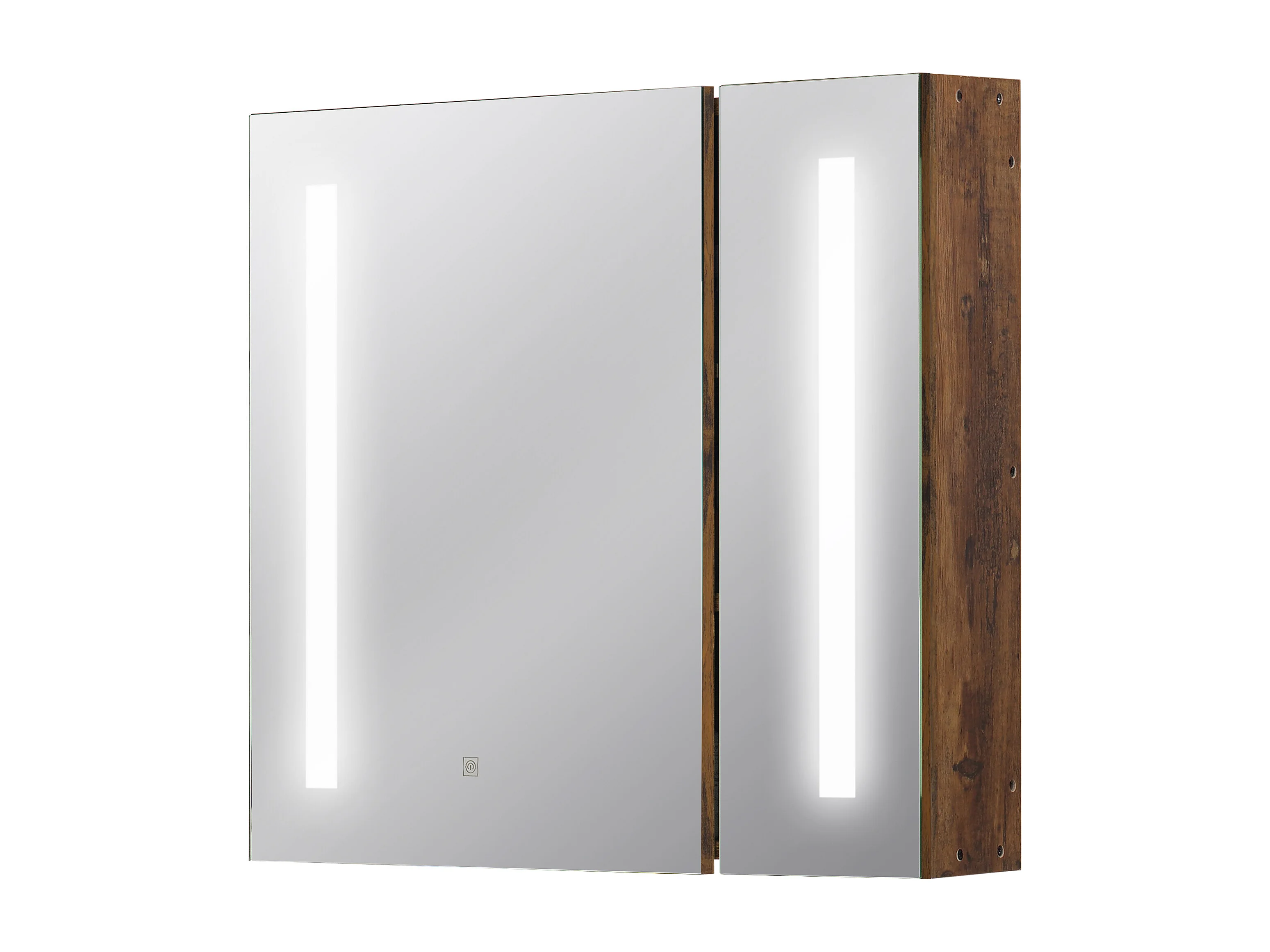 Specchiera bagno con armadietto 2 ante e luci led regolabili marrone