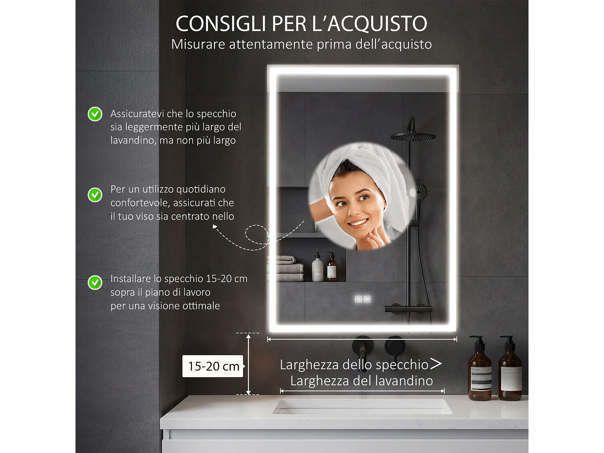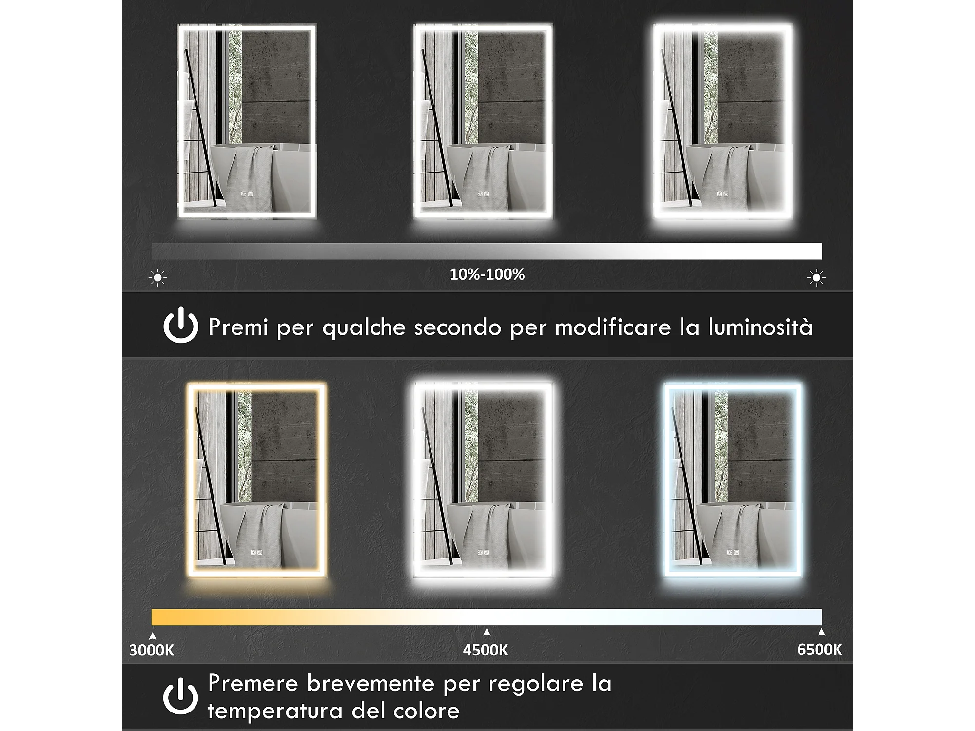 Specchiera bagno con luce regolabile e antiappannamento nero