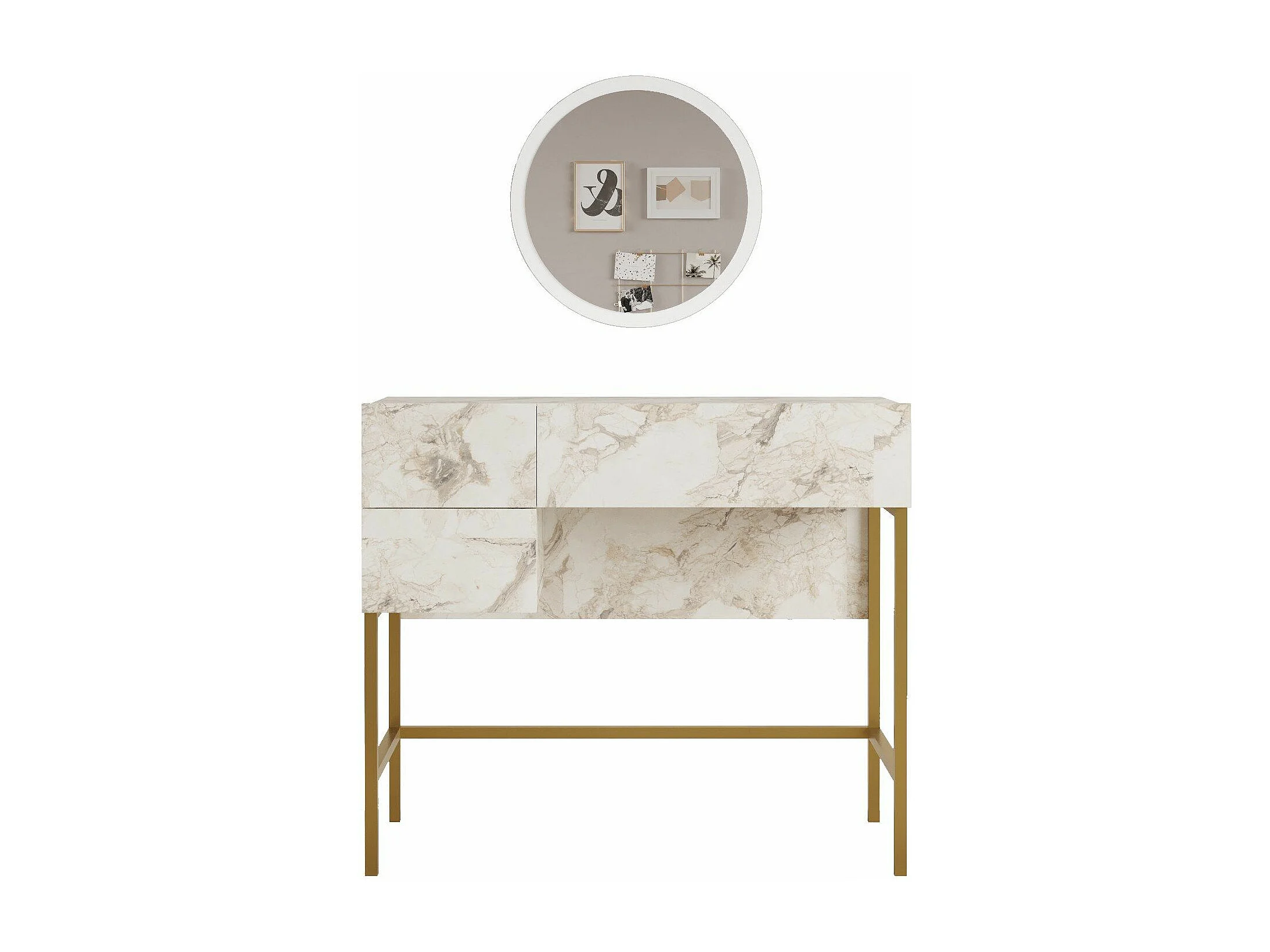 Specchiera Kailua 2090, Marmo bianco|D'oro, Specchio, 77x88x44cm