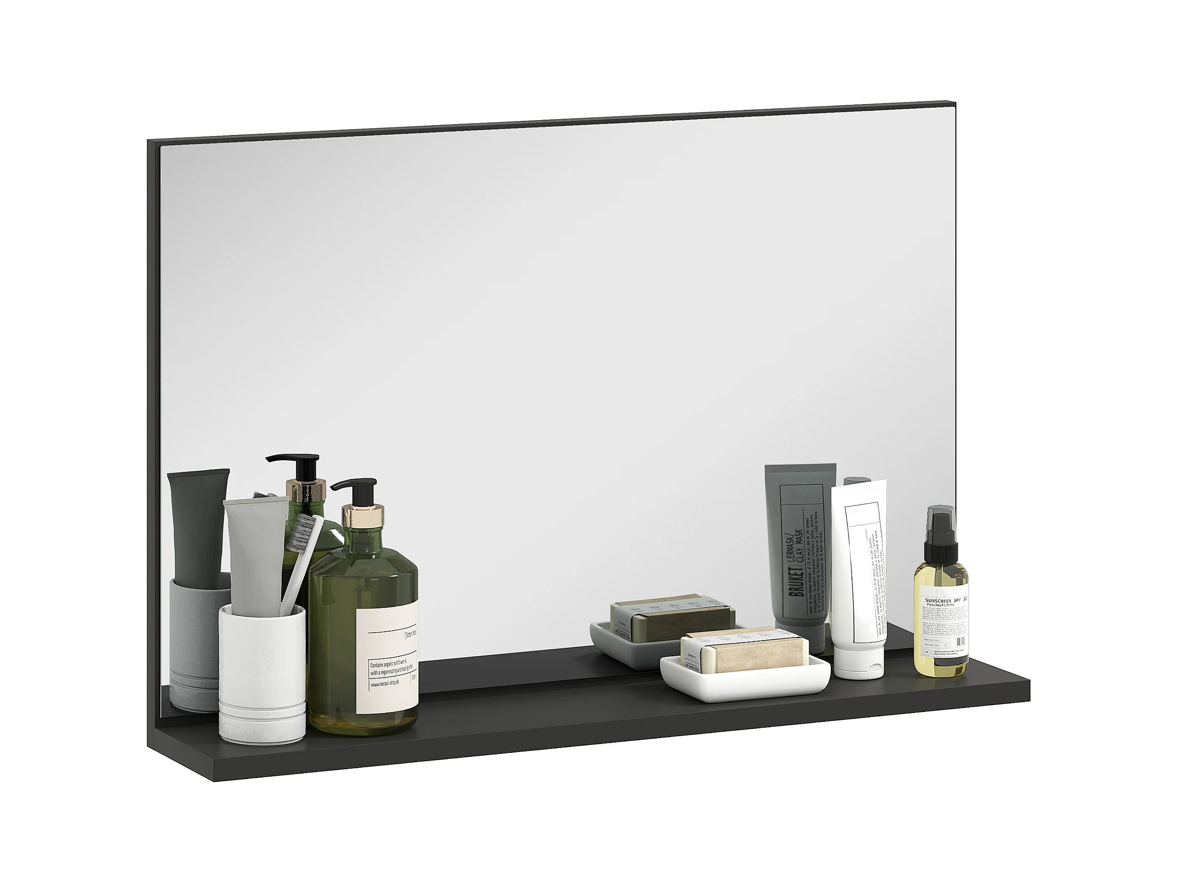 Specchio bagno da parete con mensola design moderno 60x12x40cm nero