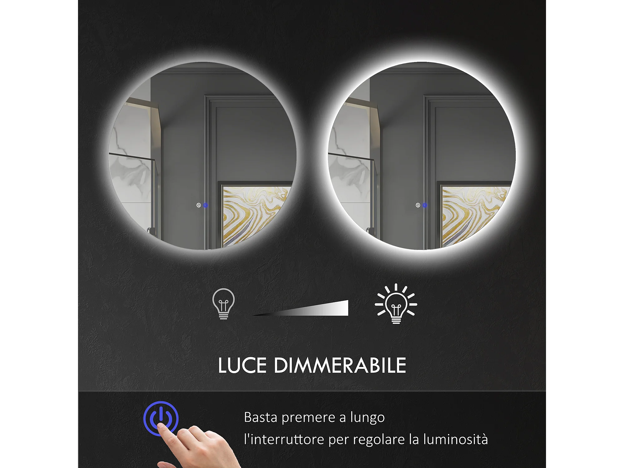Specchio bagno con luce led regolabile e funzione memoria oro