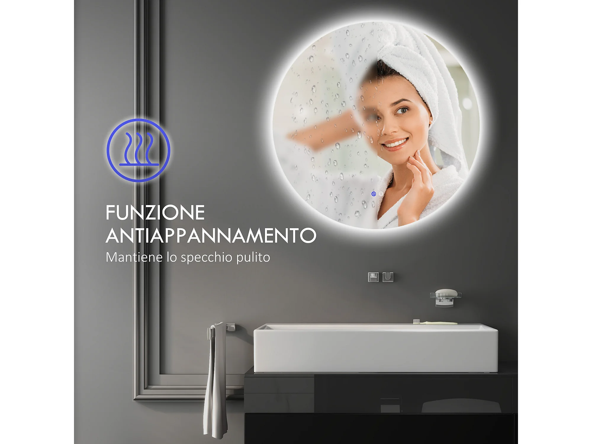 Specchio bagno illuminato regolabile e antiappannamento Ø60cm