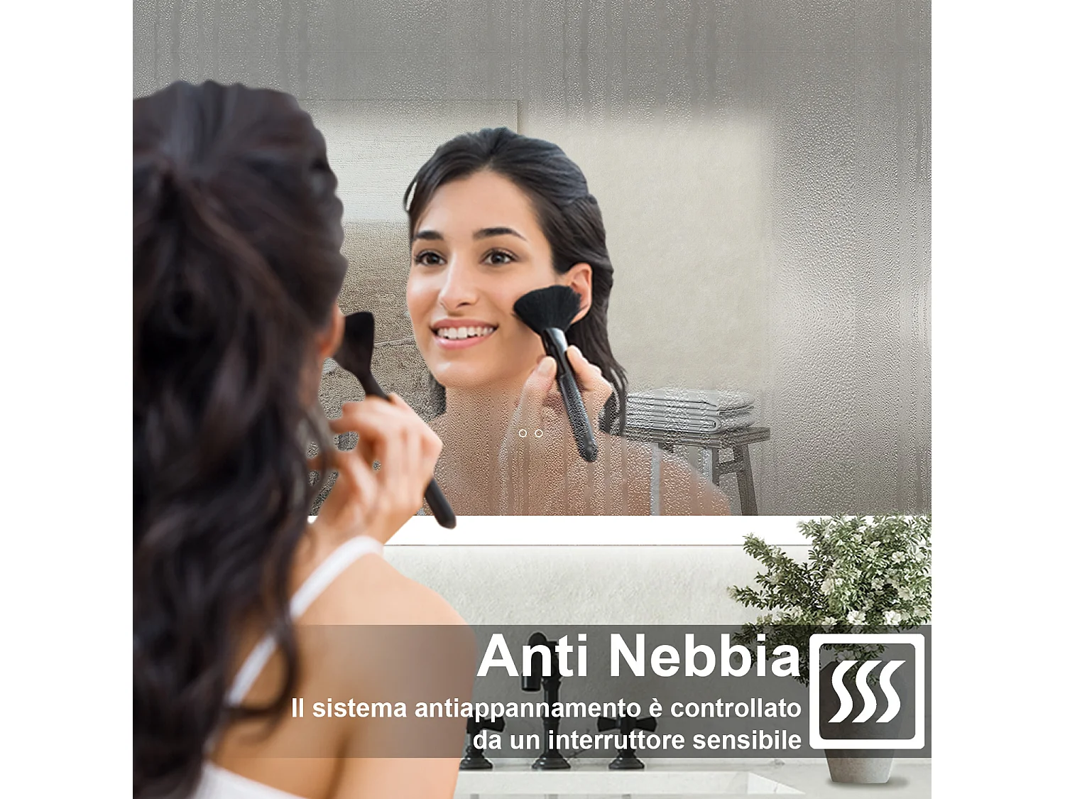 Specchio bagno Rettangolare 120x70cm Retroilluminato Con Led, Antiappannamento