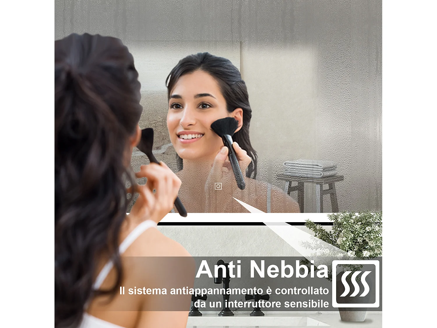 Specchio bagno Rettangolare 120x70cm Retroilluminato Con Led, Antiappannamento + 3 Luci