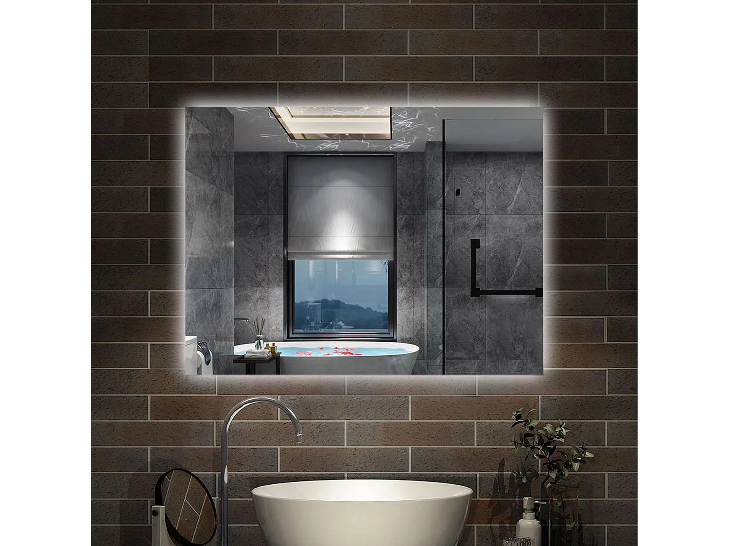 Specchio bagno Rettangolare 80x60 cm con led. Dimmerabile + Touch Control + Bordo non sabbiato + IP44