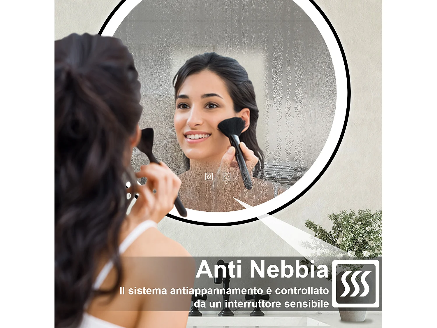 Specchio bagno Tondo Diametro 70cm Retroilluminato Con Led, Antiappannamento + 3 Luci