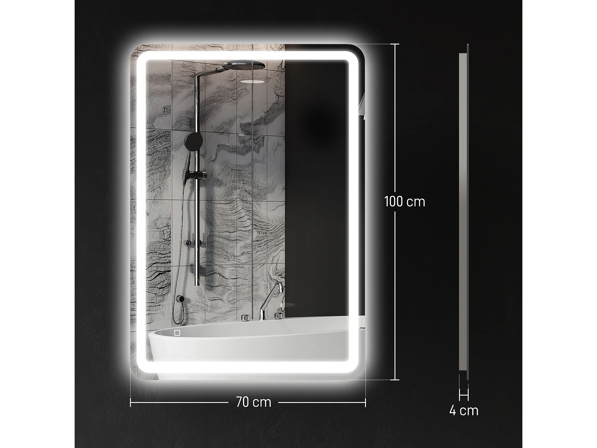 Specchio bagno touch con luce led e antiappannamento 70x100 cm