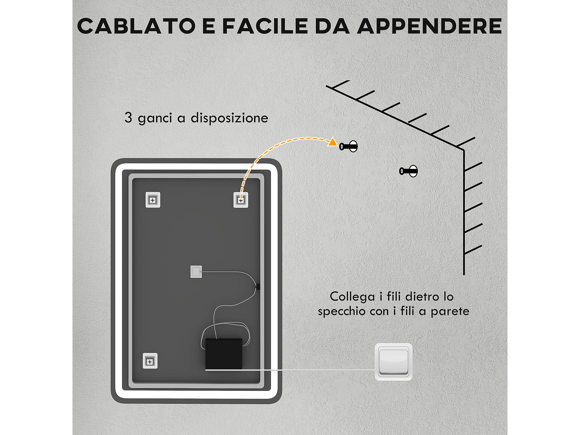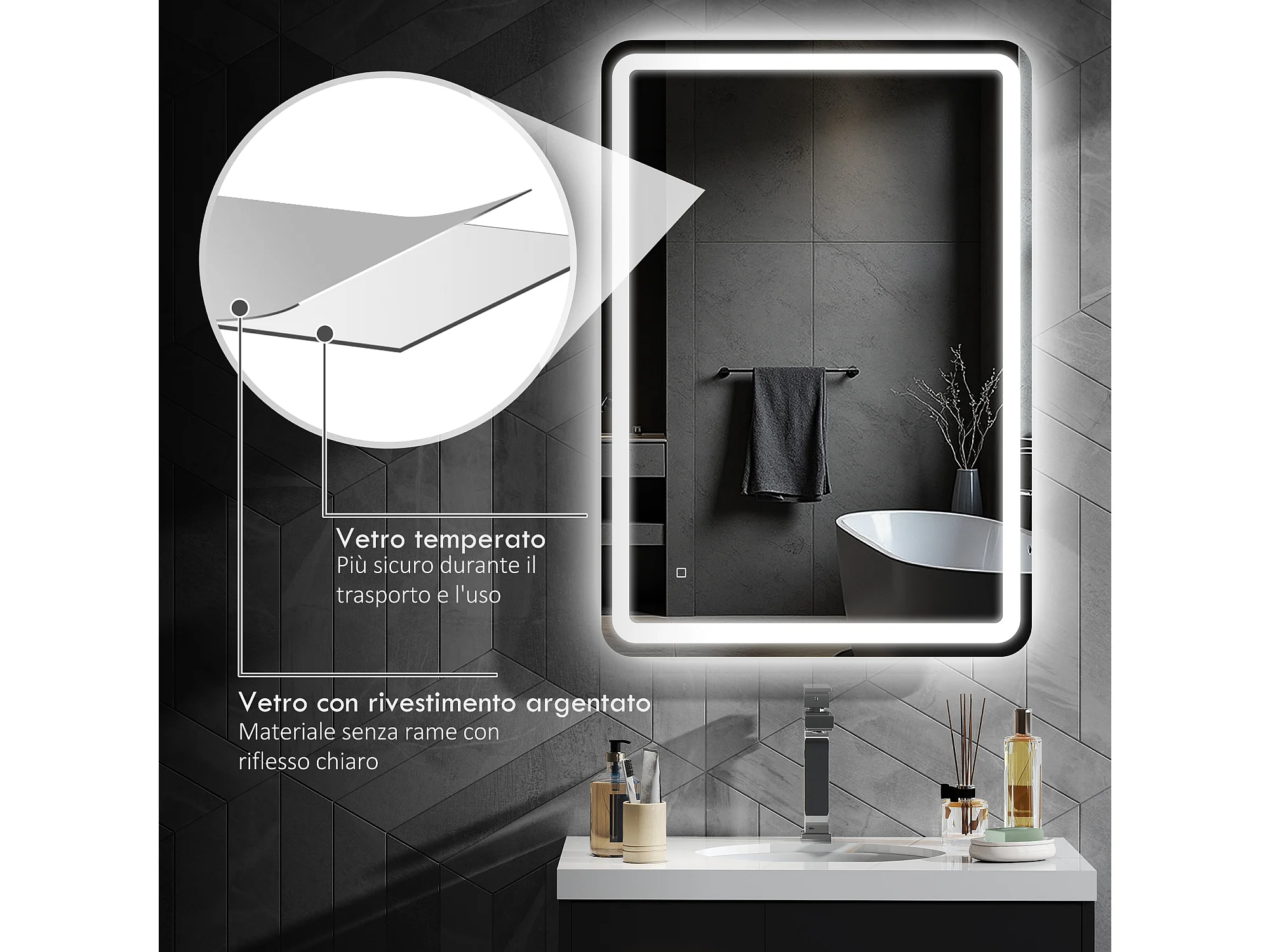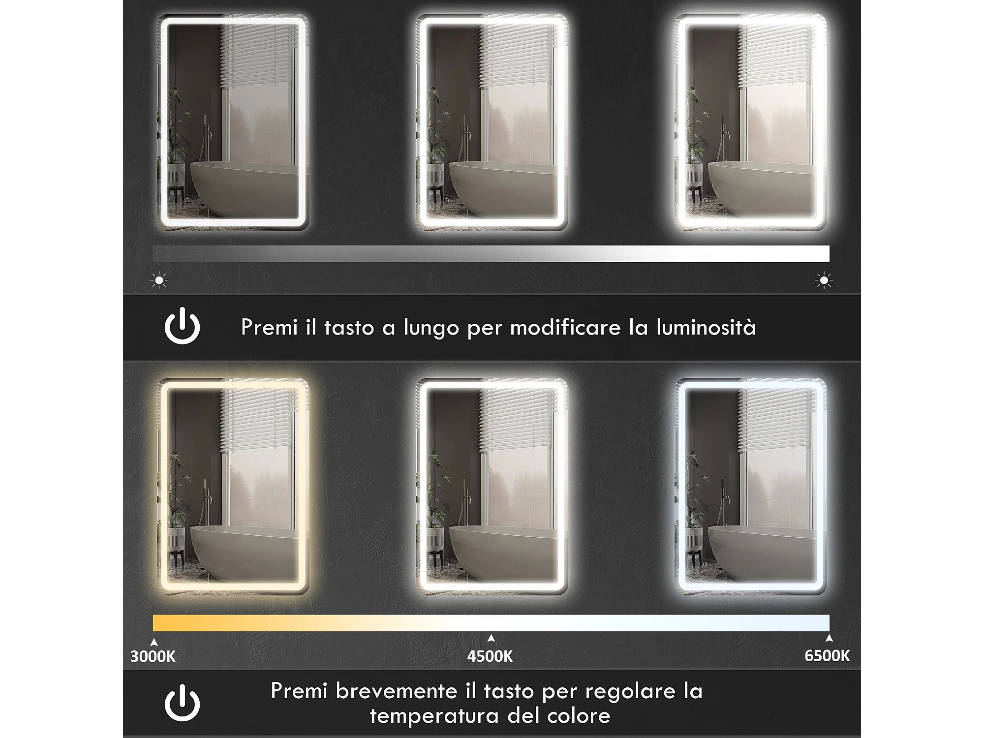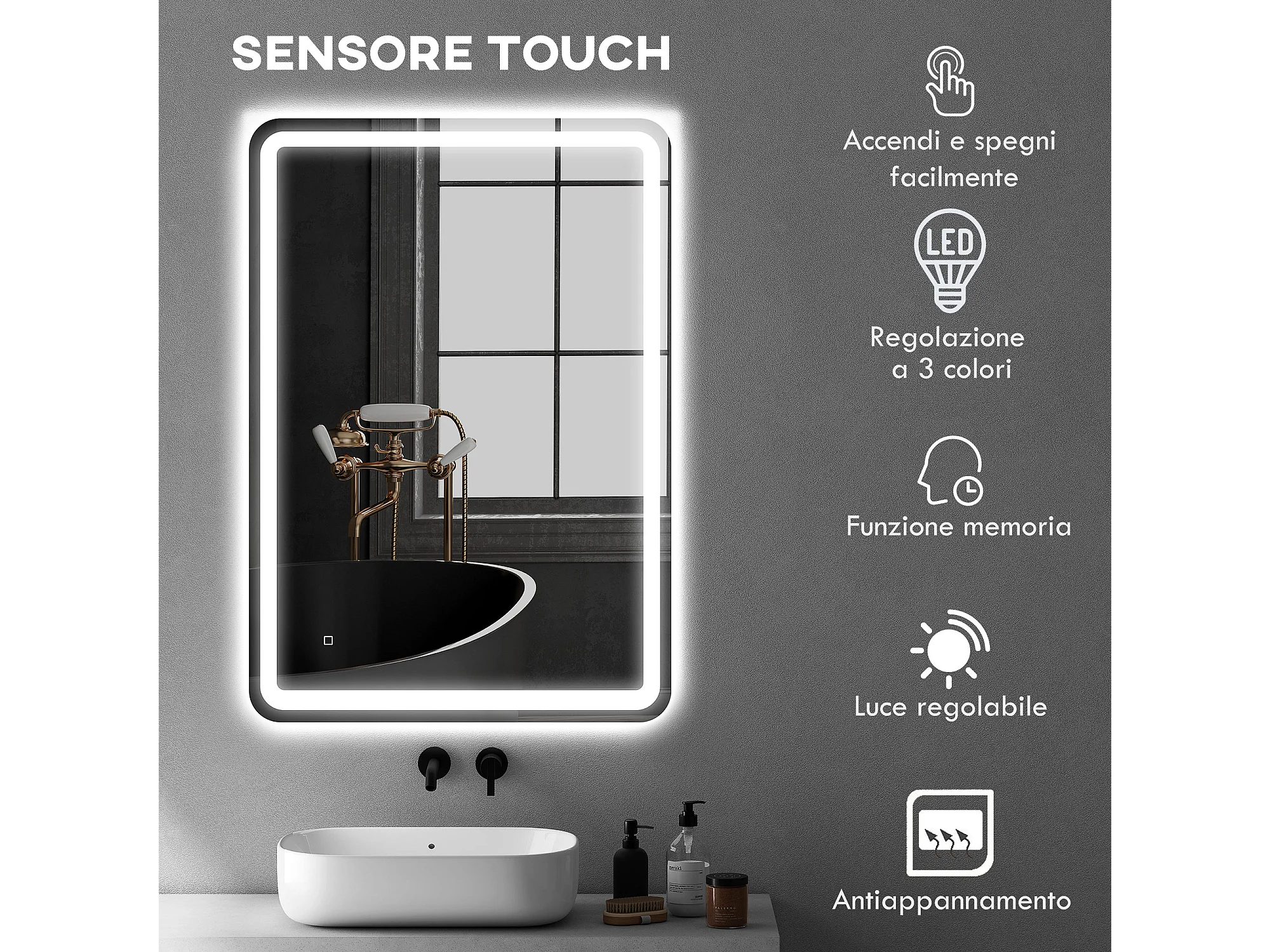 Specchio bagno con luce led interruttore touch e antiappannamento