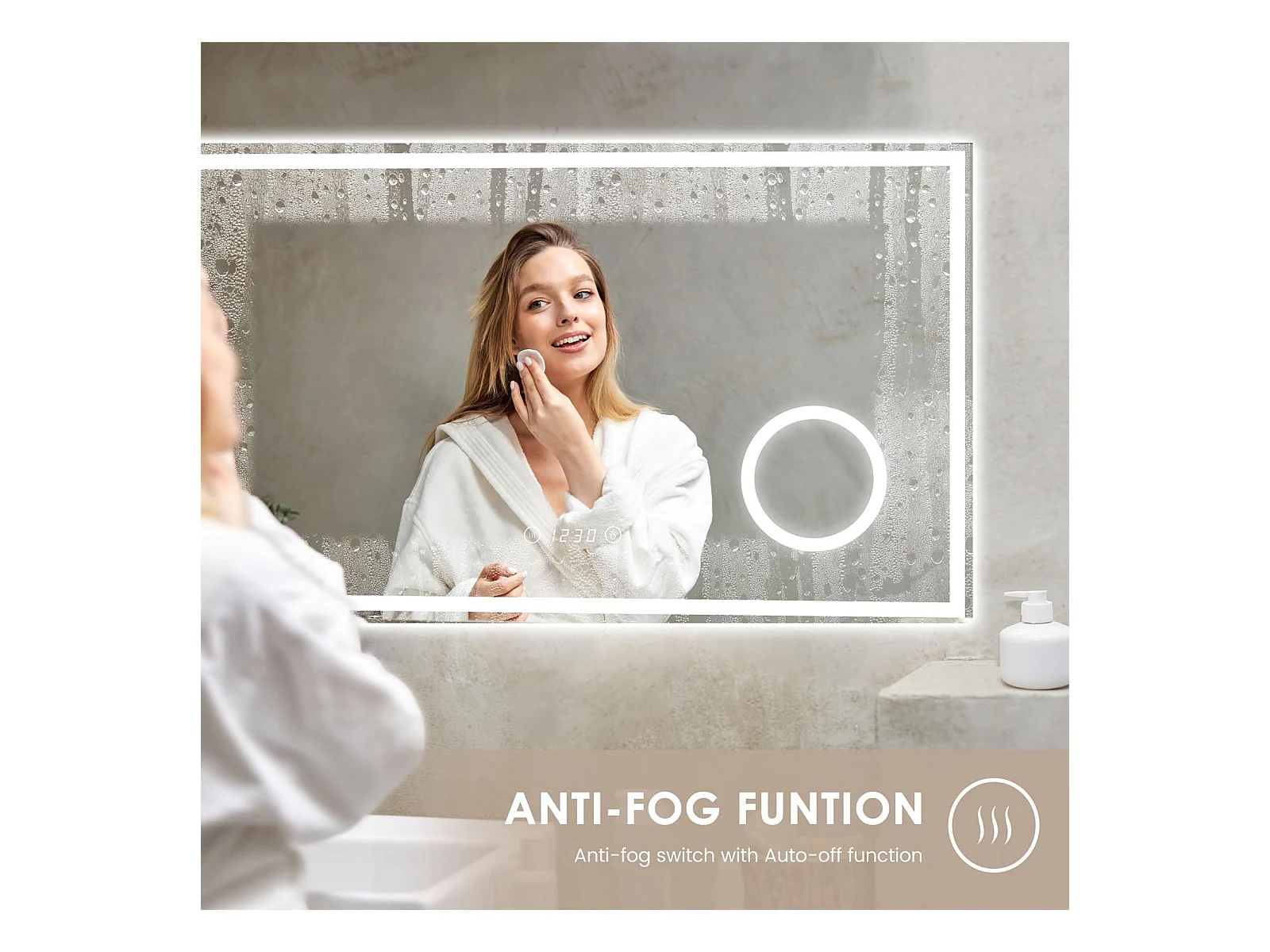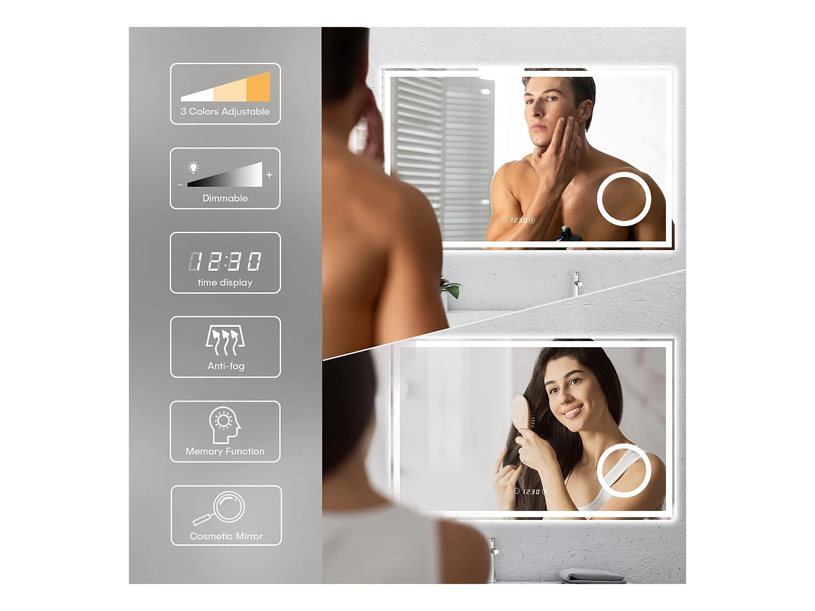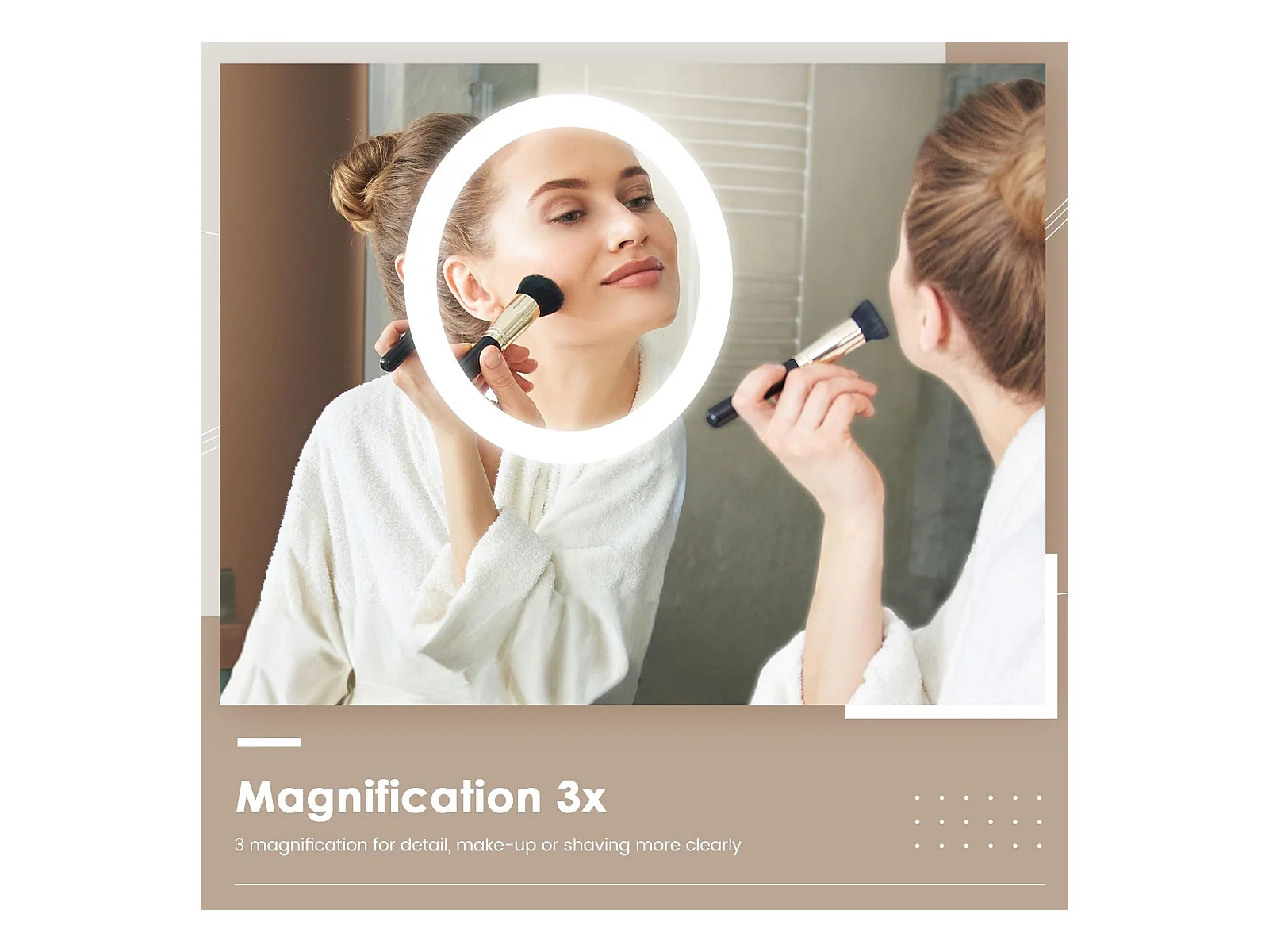 Specchio da bagno 80x60cm LED, antiappannamento, 3 lenti di ingrandimento, dimmerabile 3 colori, presa per rasoio, IP44