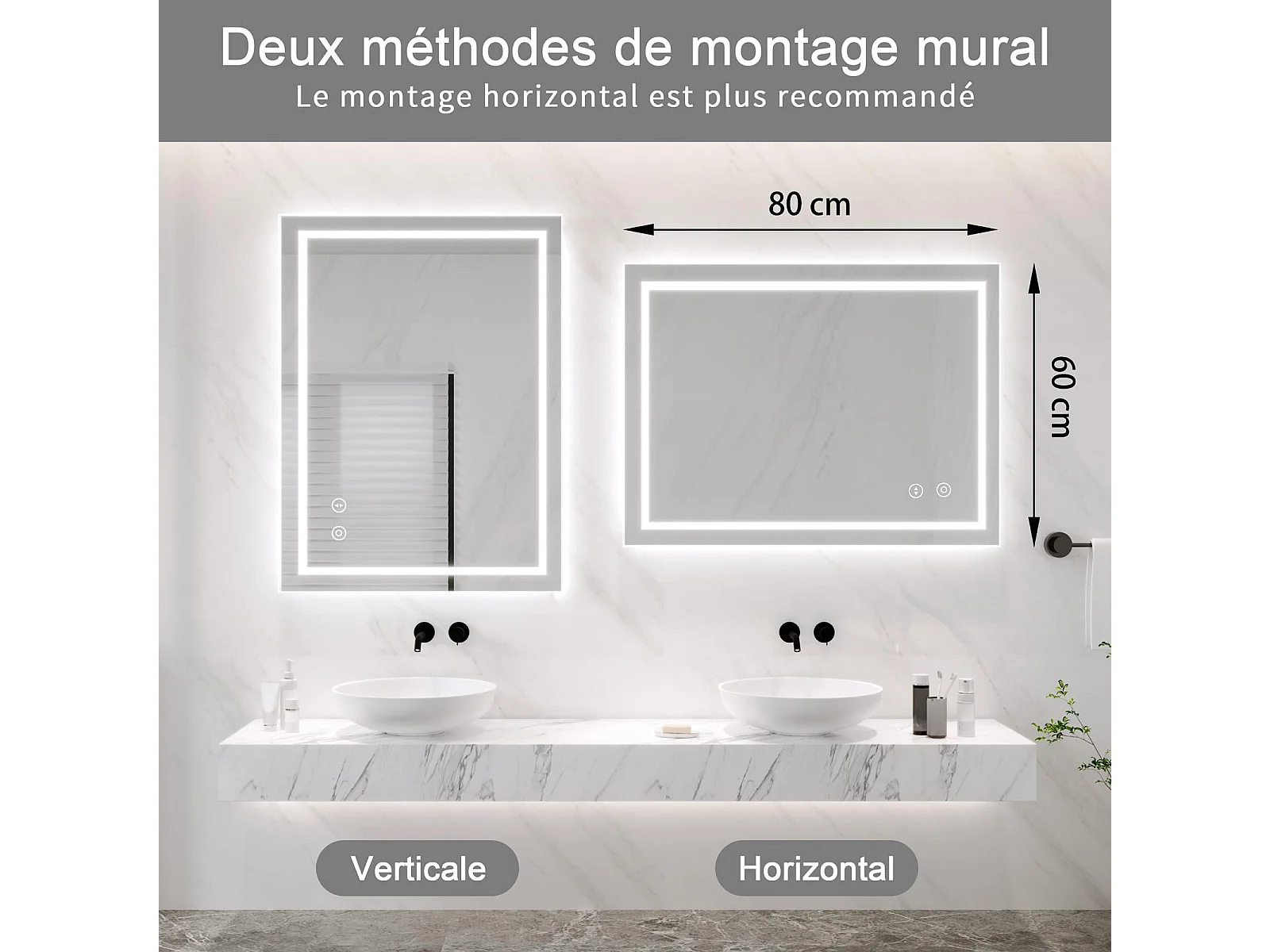 Specchio da bagno 60x80cm LED, antiappannamento, 20W, interruttore touch, antideflagrante, memoria, impermeabile IP44