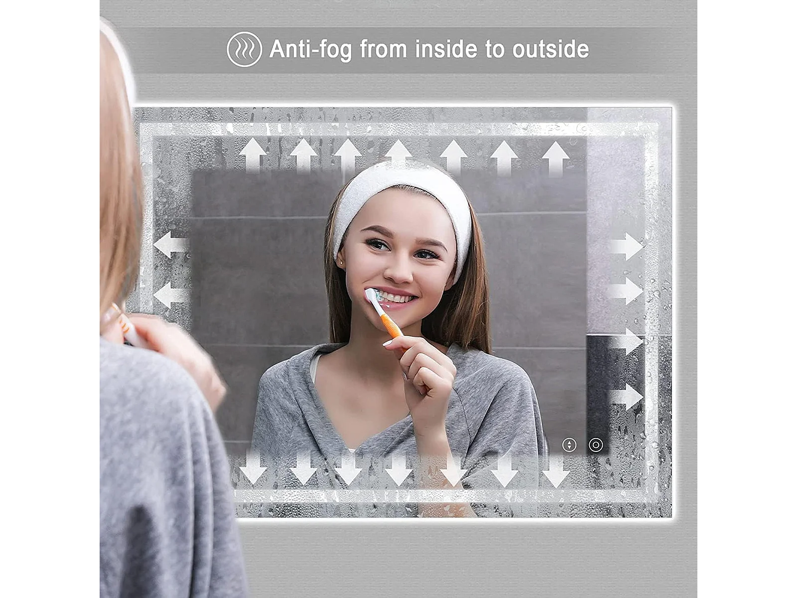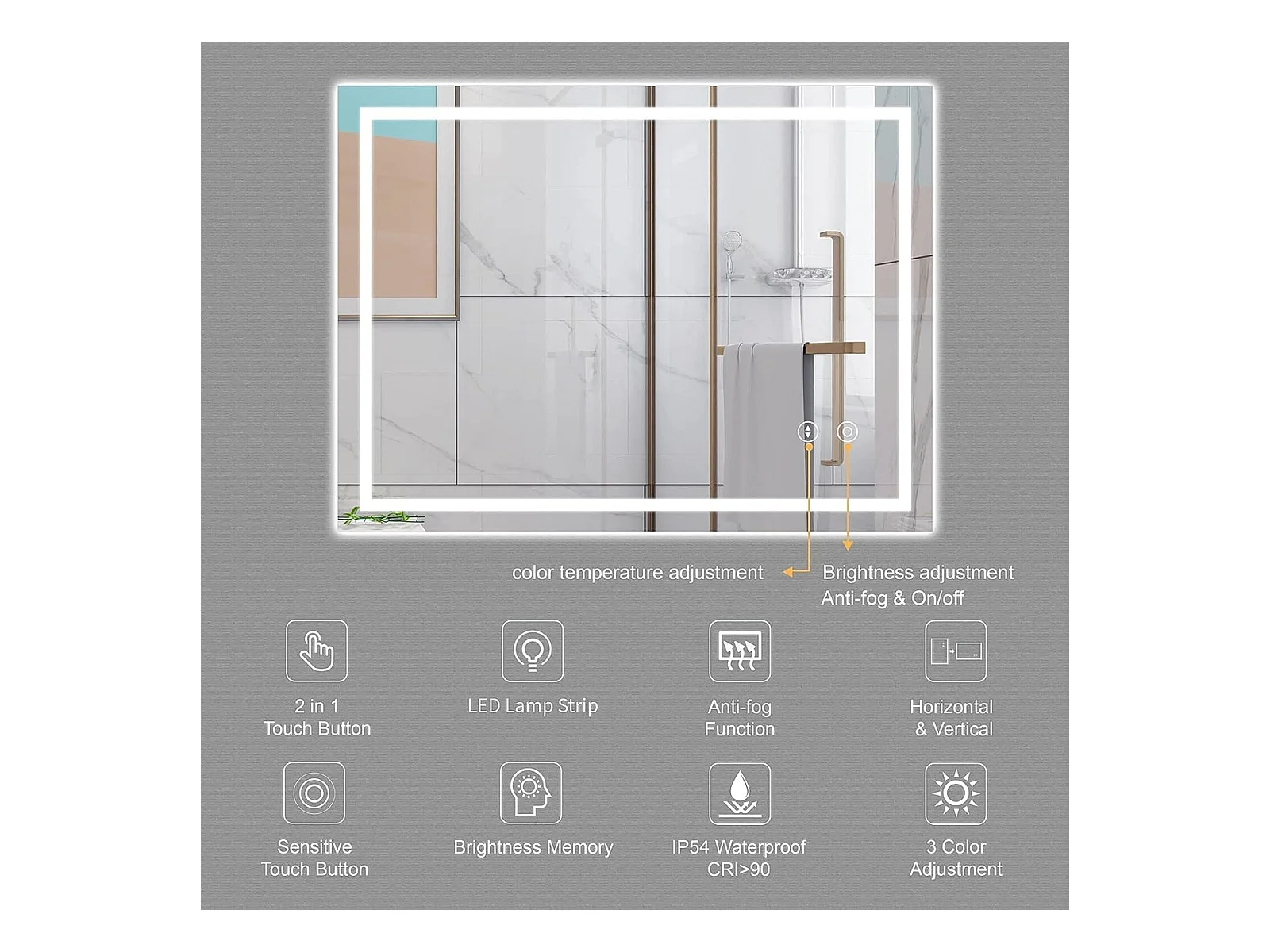 Specchio da bagno 60x80cm, LED 30W, antiappannamento, dimmerabile in 3 colori, interruttore touch, antideflagrante, memoria, impermeabile IP44