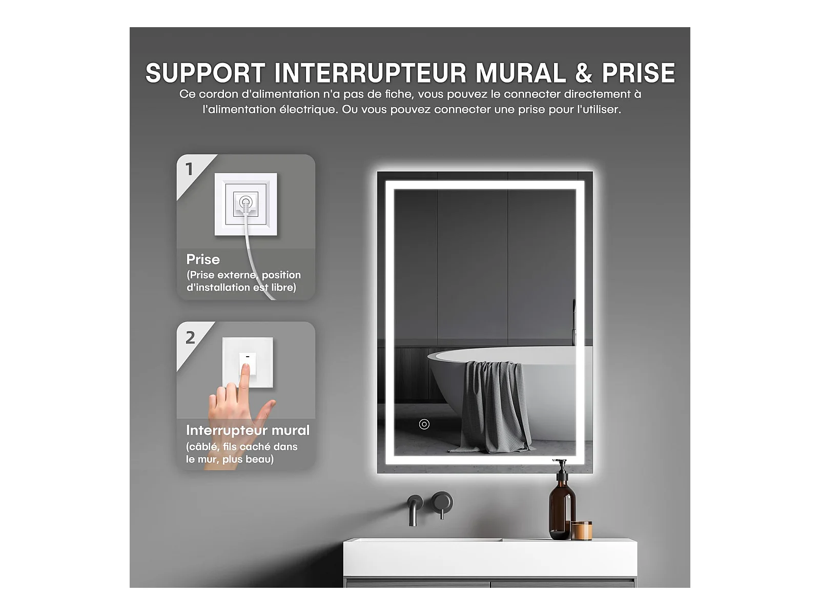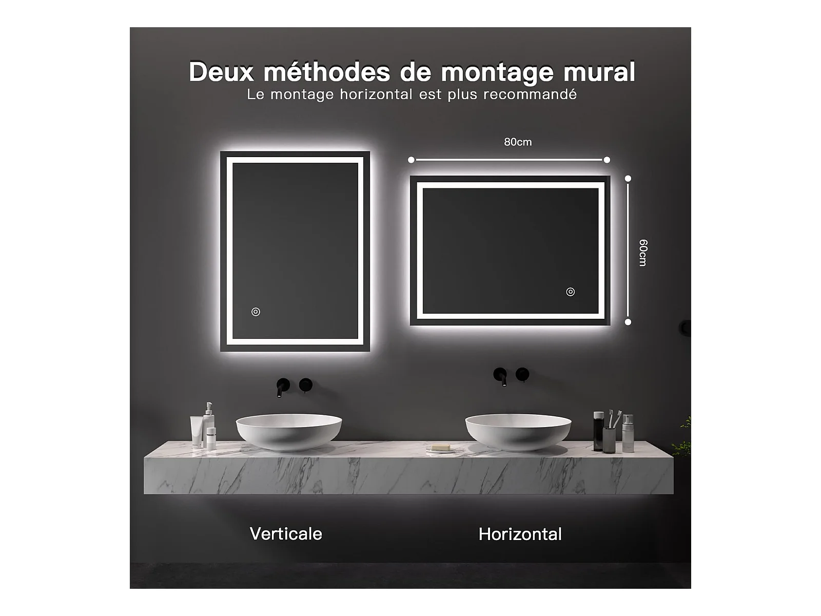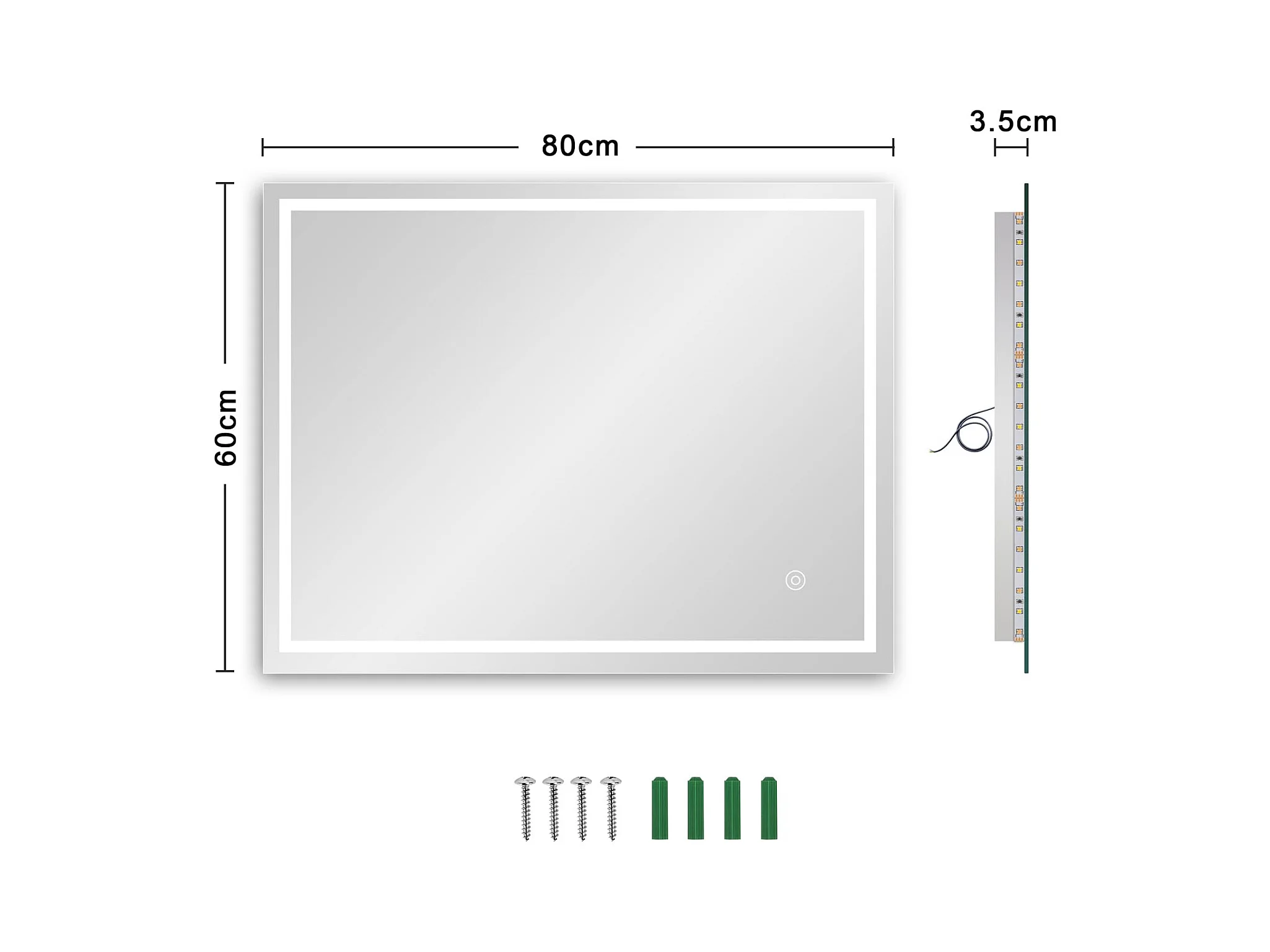 Specchio da bagno 60x80cm LED, antiappannamento, 20W, interruttore touch, antideflagrante, memoria, impermeabile IP44