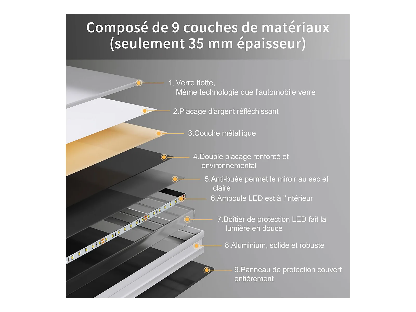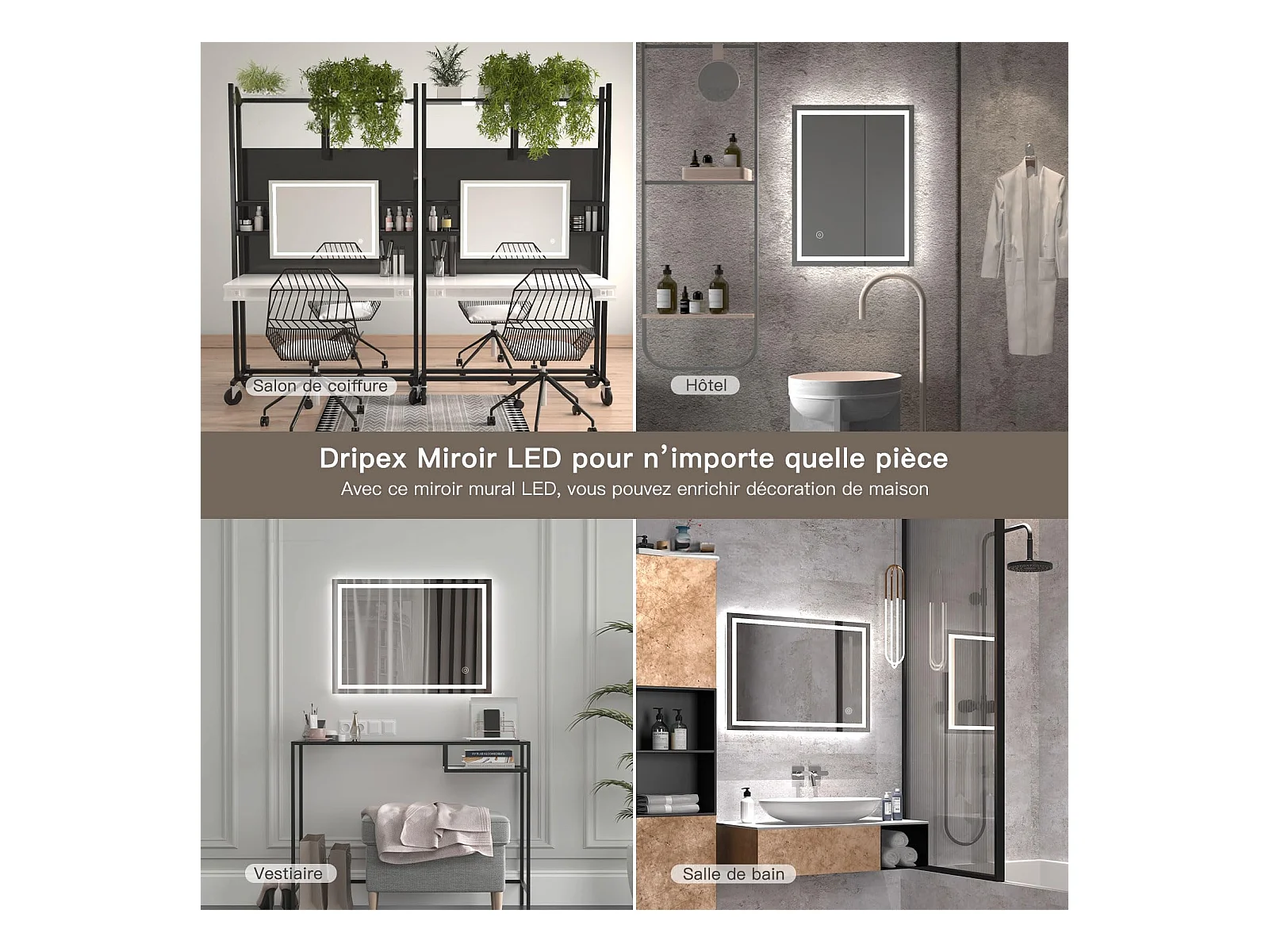 Specchio da bagno 60x80cm, LED 30W, antiappannamento, dimmerabile in 3 colori, interruttore touch, antideflagrante, memoria, impermeabile IP44