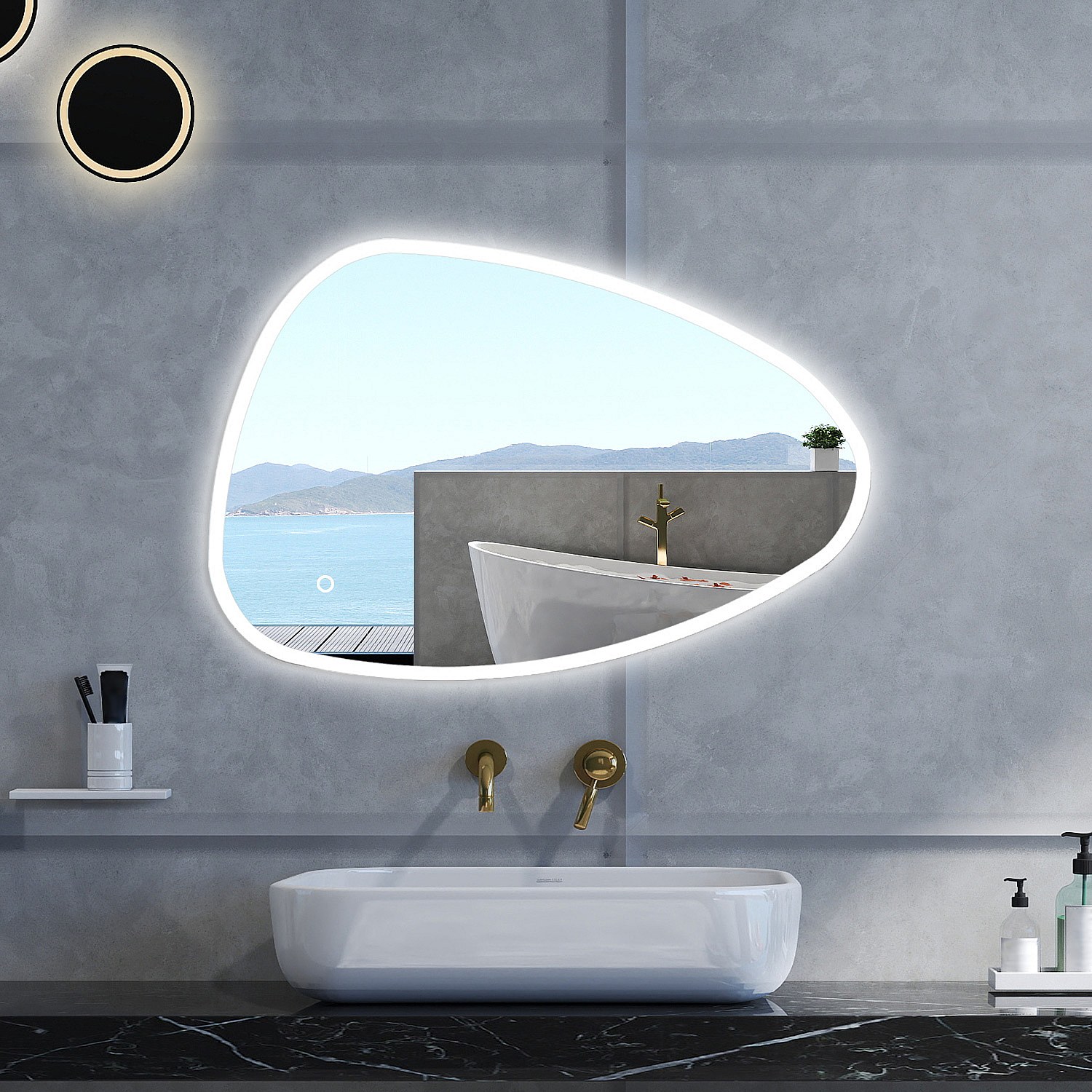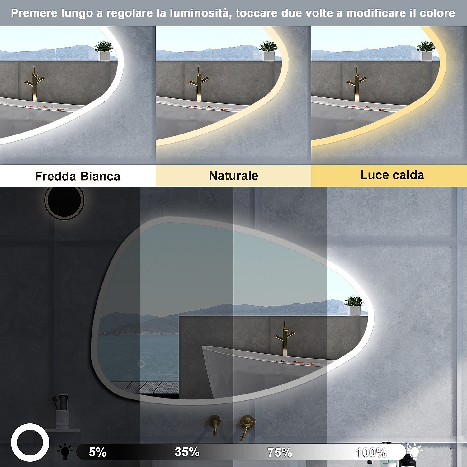 Specchio da bagno Asimmetrico con 120x80cm,3 colori,Memoria, Antifog,Regorabile,Retroilluminato,doppio interruttore,