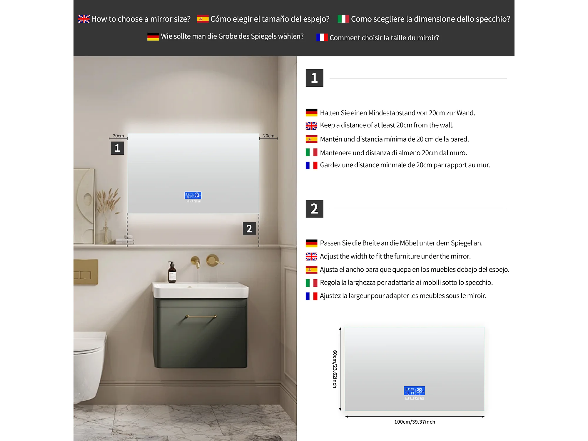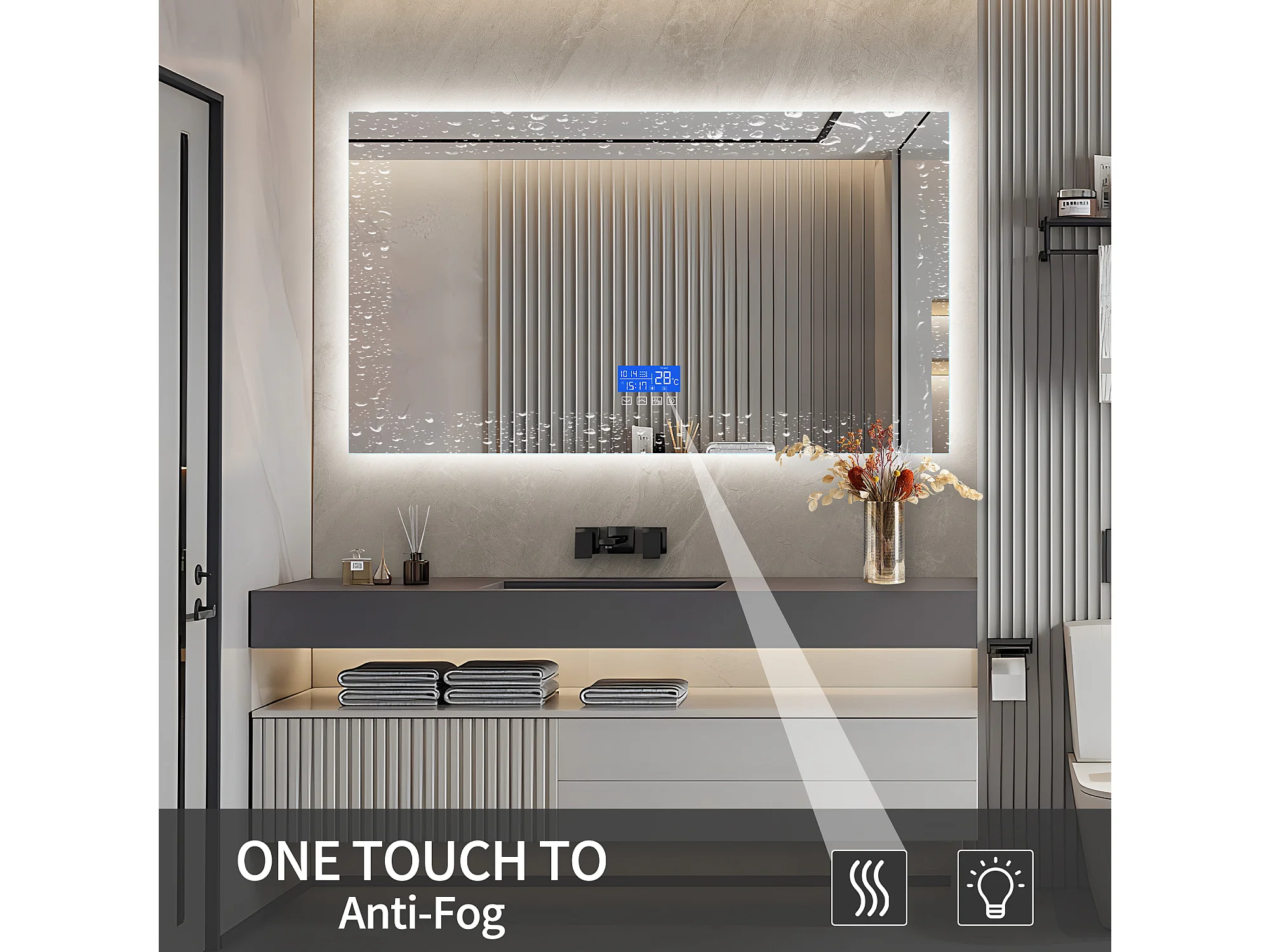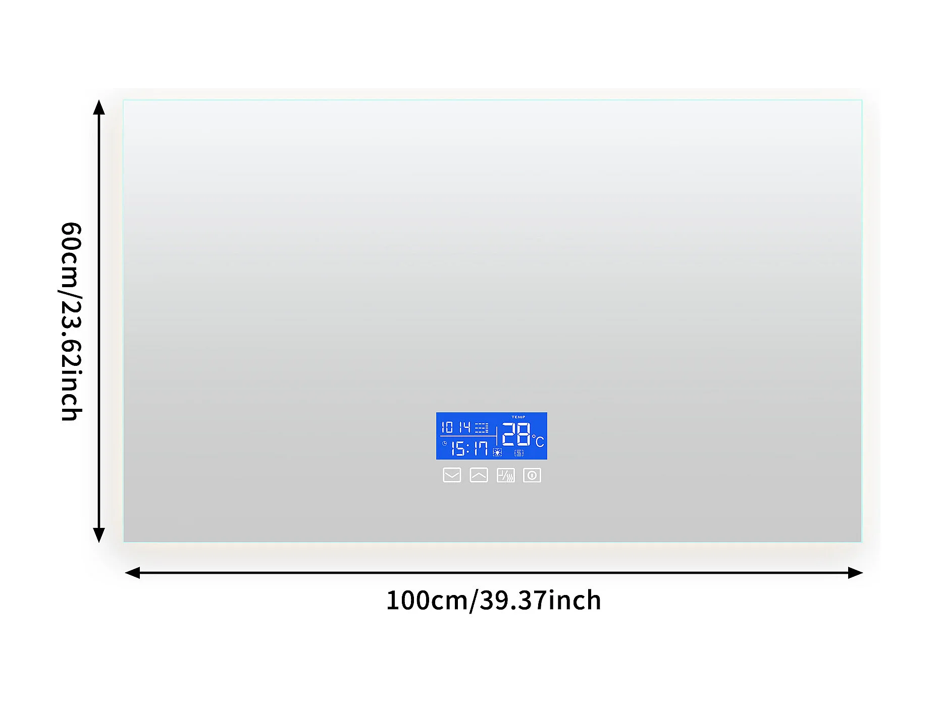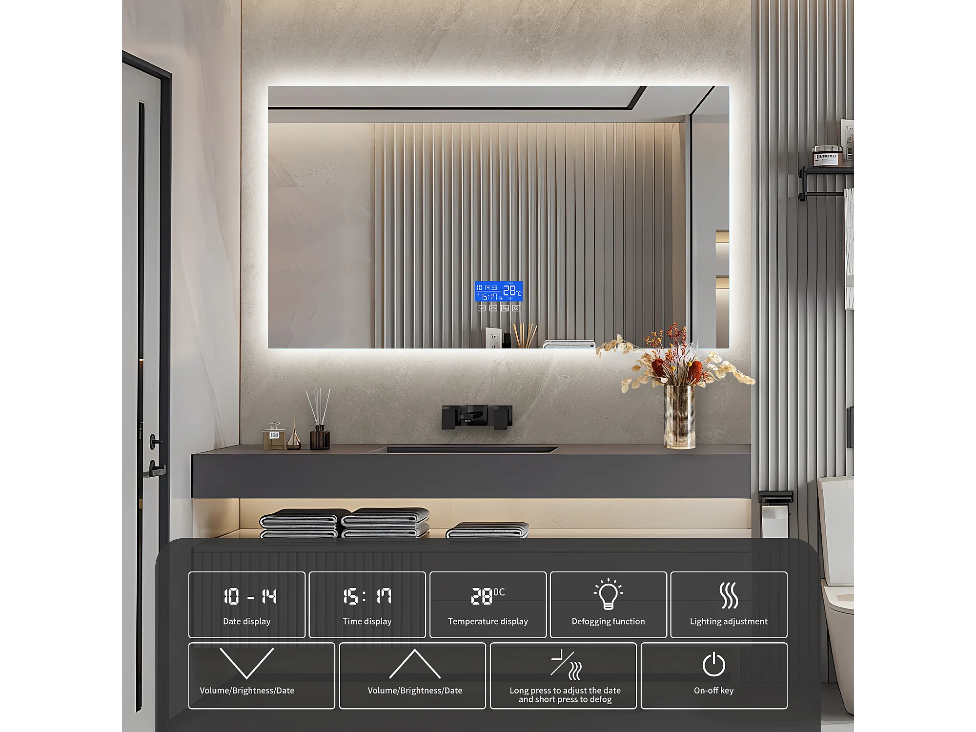 Specchio da bagno con illuminazione - 100 x 60 cm - Specchio da bagno LED - con touch, antiappannamento, orologio, temperatura, dimmerabile