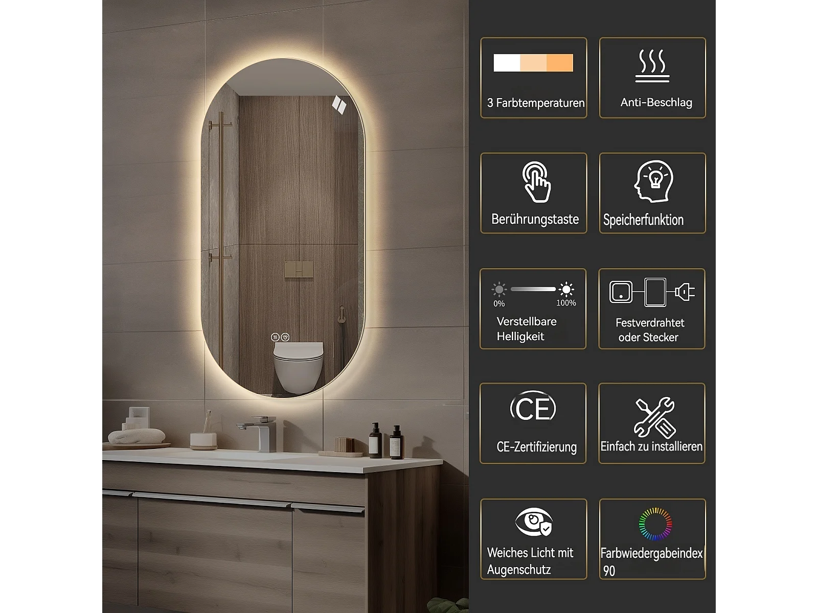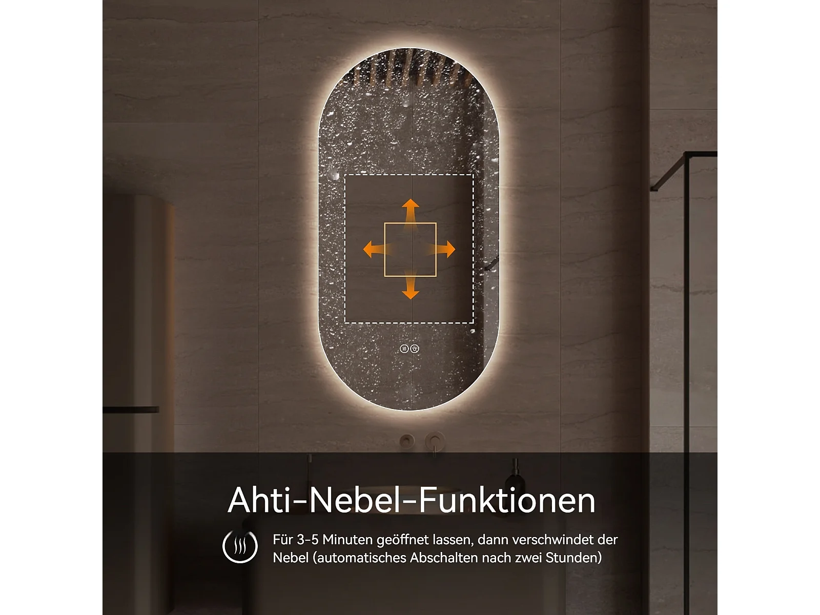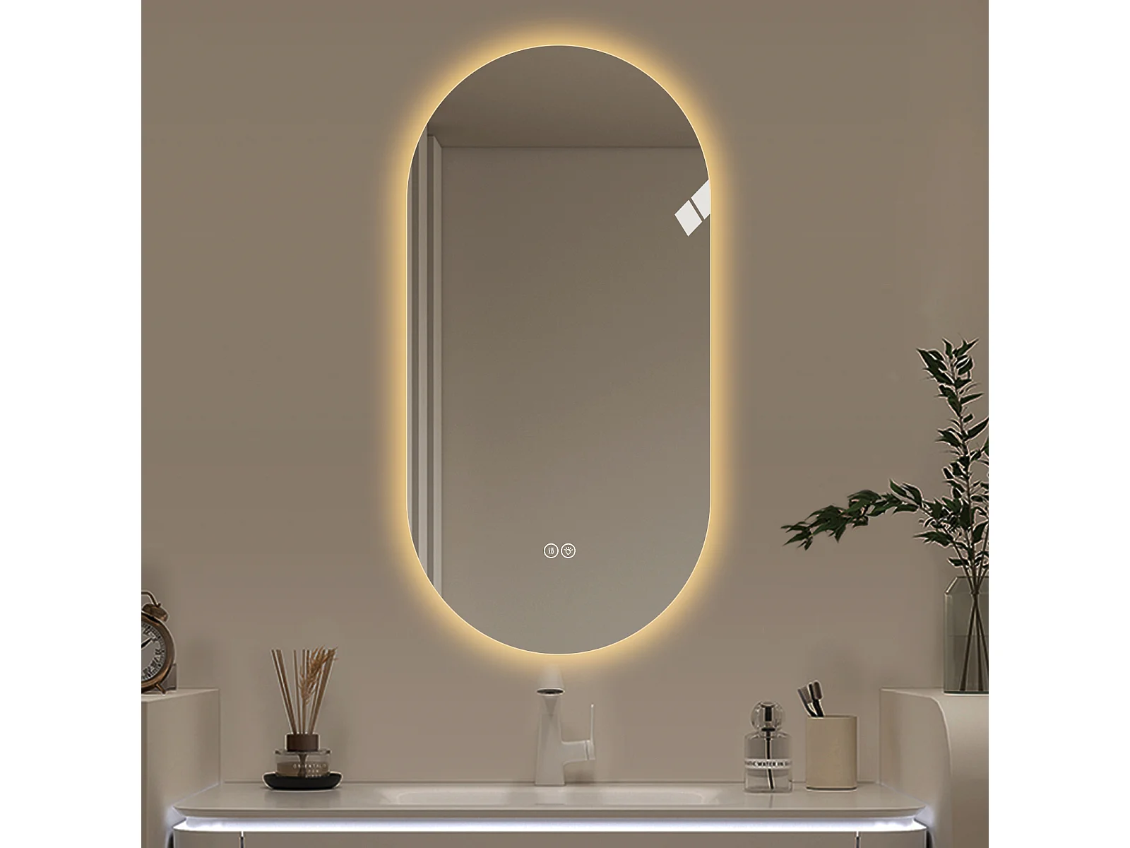 Specchio da bagno LED touch sensitive con funzione antiappannamento, 60x120 cm, vetro argentato