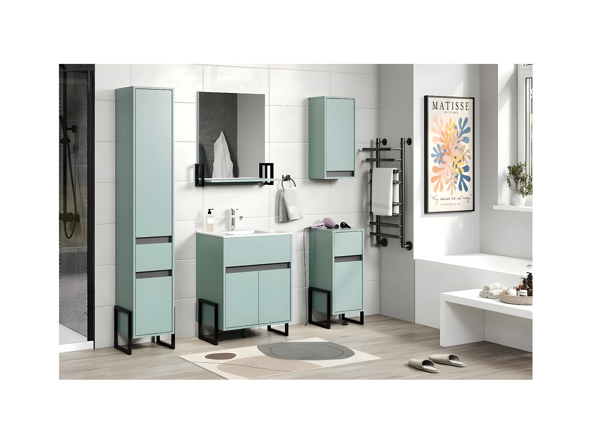 Mobiletto con specchio da bagno Vira, 1 anta, bianco lucido, bianco.