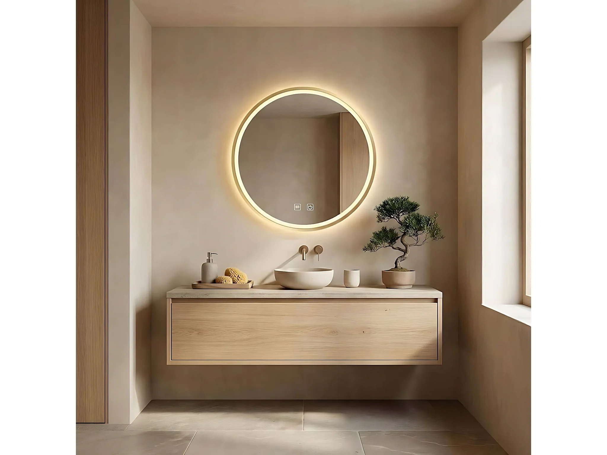 Specchio Da Bagno Rea Led Mmj Gold 80Cm, Rotondo, 80X80X80Cm