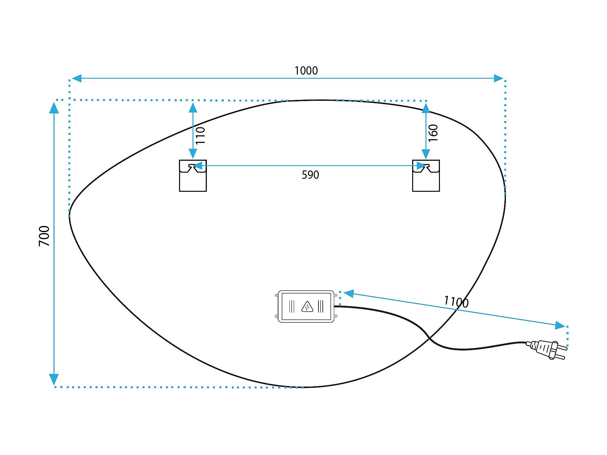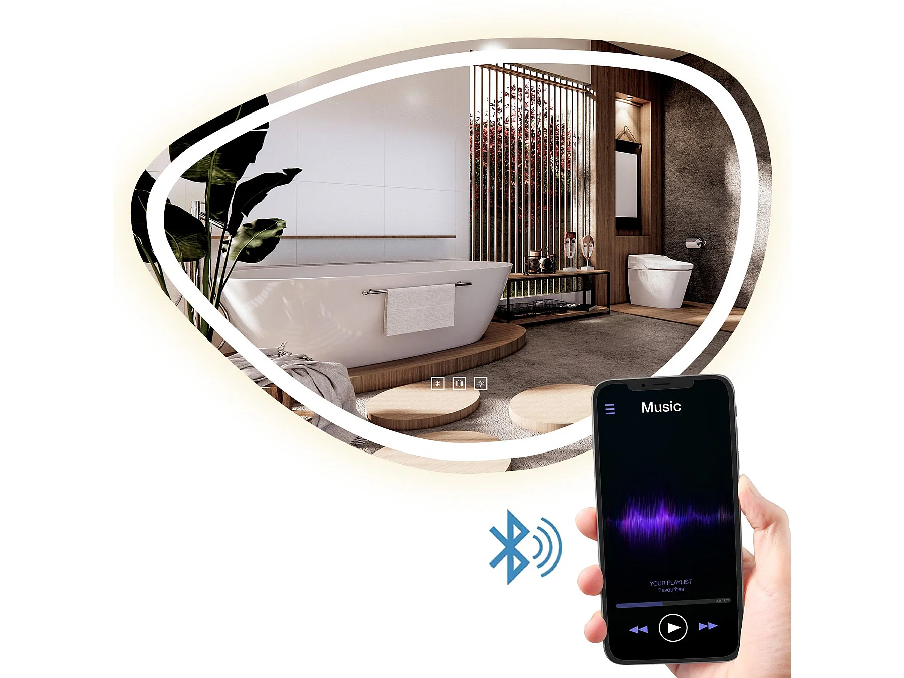 Specchio Da Bagno Rea Led P11238 Fog Grey 70X100Cm, Irregolare, 2X68X100Cm