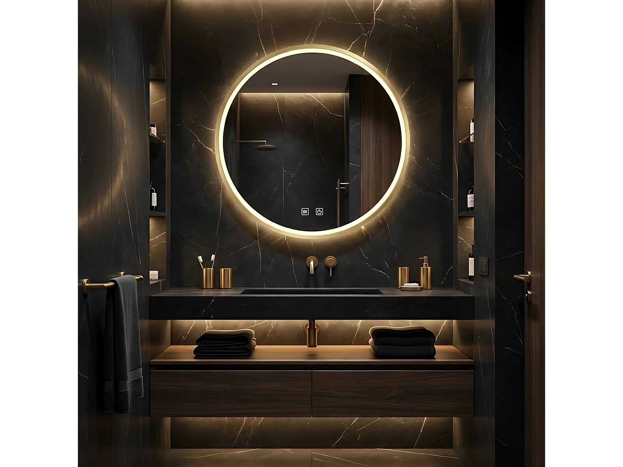 Specchio Da Bagno Rea Led P11398 Mmj Rose Gold 90Cm, Rotondo, 90X90X90Cm