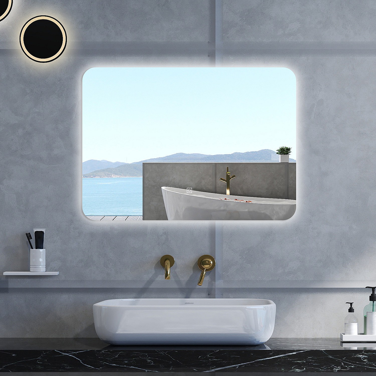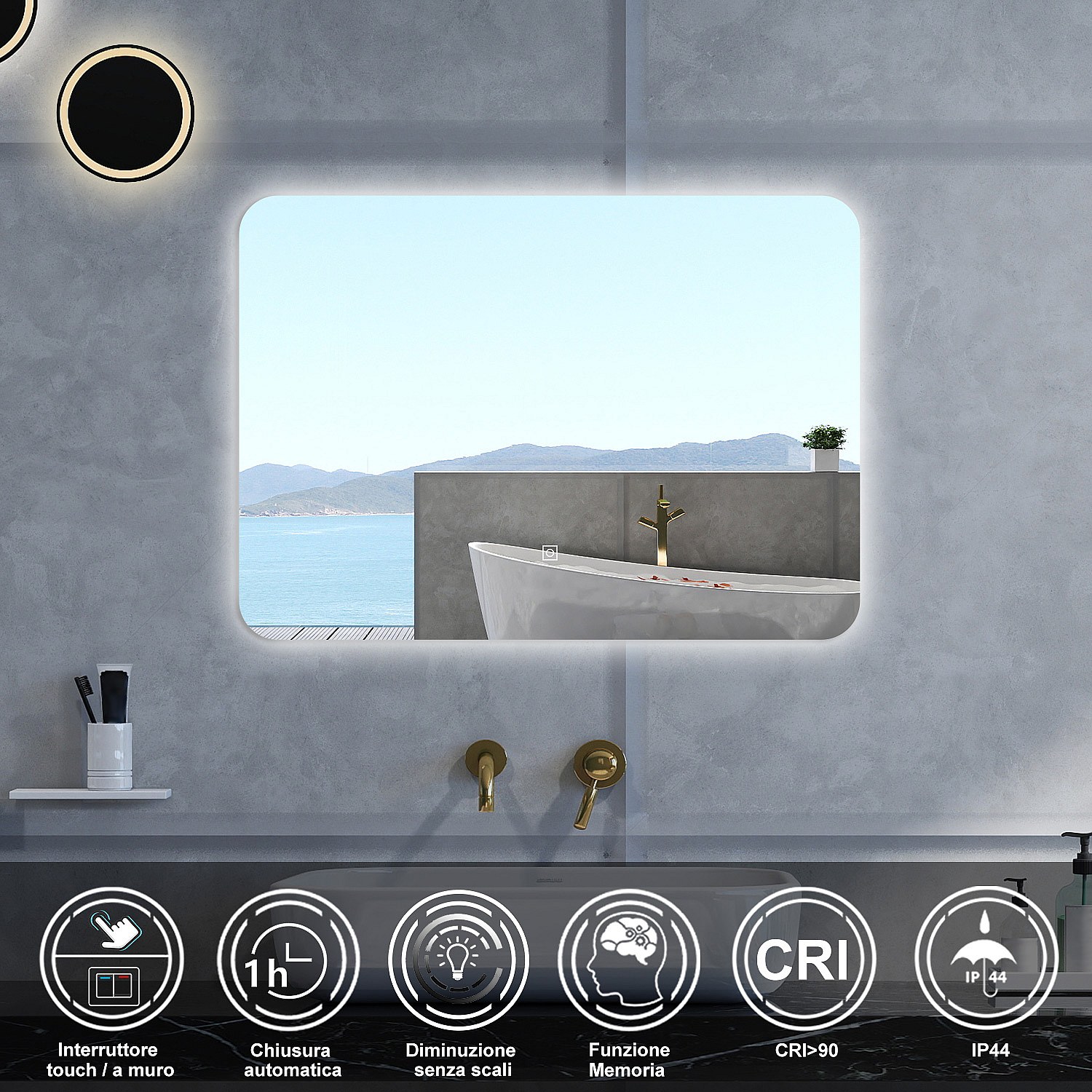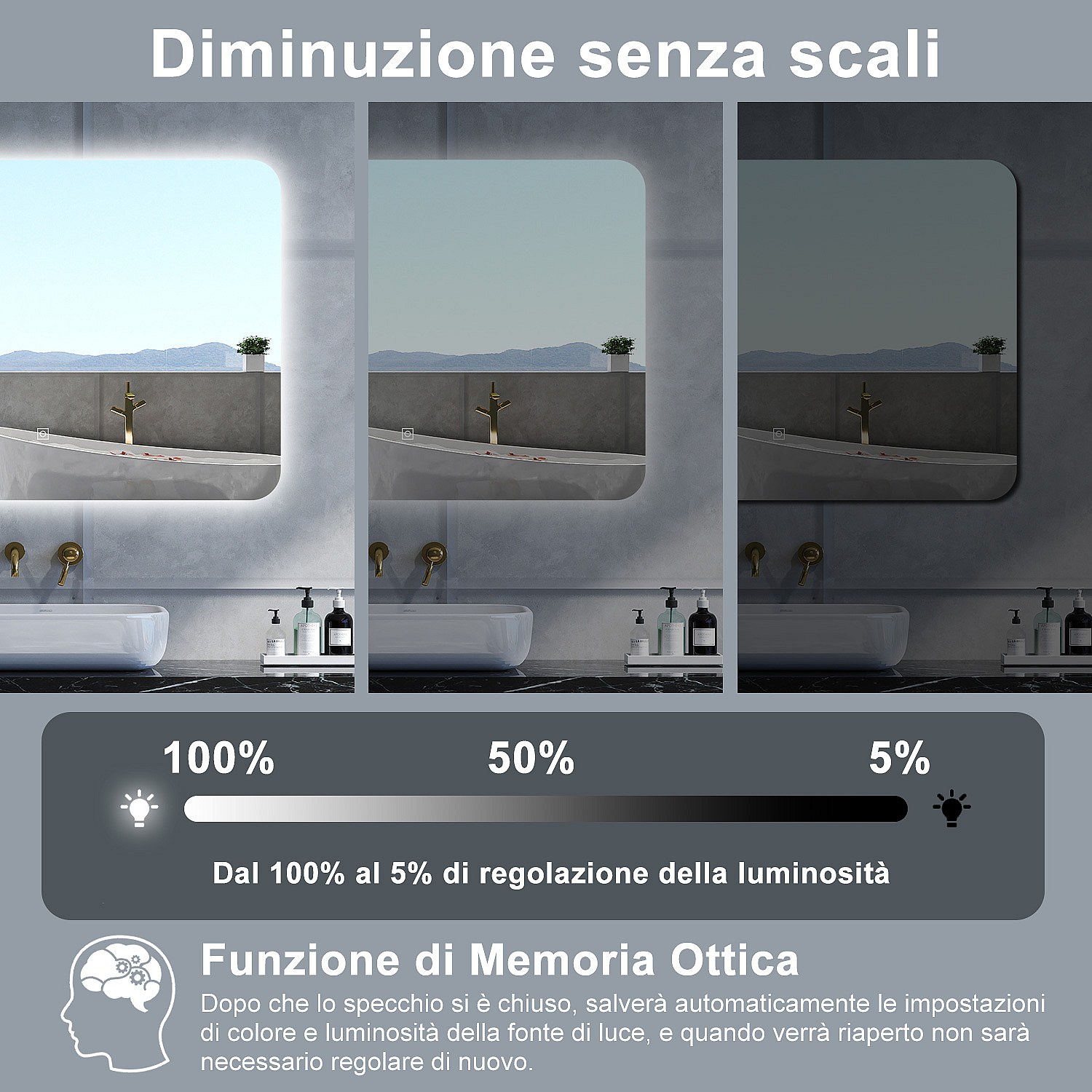 Specchio da bagno Rettangolare con 100x60cm,Memoria,Regorabile,Retroilluminato,doppio interruttore,HD temperato