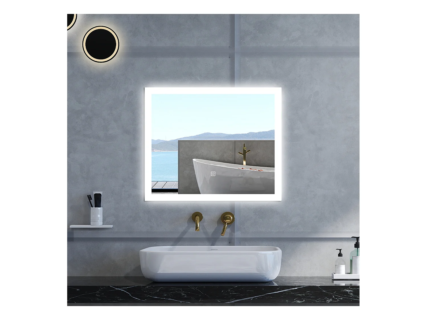 Aica LED Specchio da bagno 60×50 cm, luminosità regolabile a 3 colori, antiappannamento, memoria di interruzione di corrente