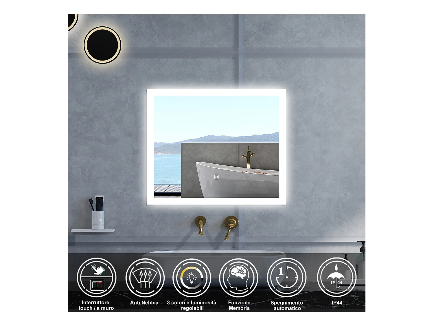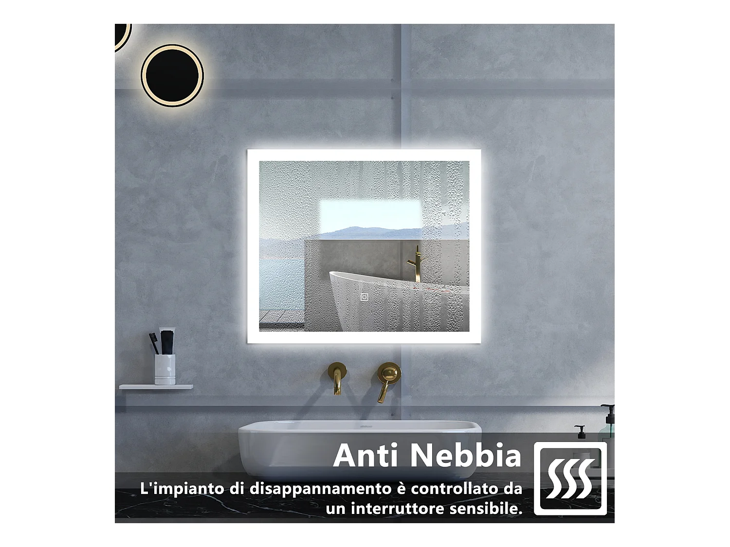 AICA Specchio da bagno 60 x 50 cm, dimmerabile, Funzione Memoria, antiappannamento, 3 colori