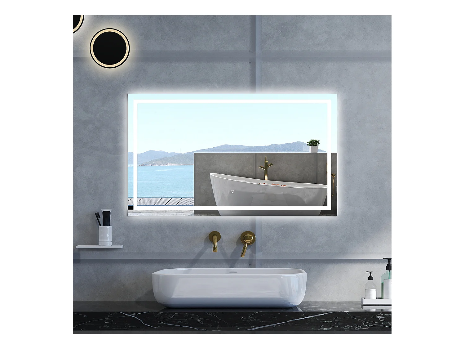Aica Specchio da bagno a LED, 70x50cm, Disappannamento, Infinitamente Dimmerabile, Funzione Memoria, 3 Temperature di Colore