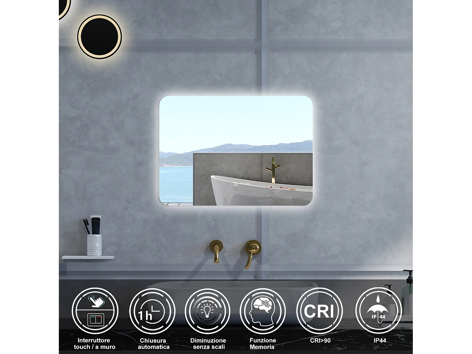 Specchio da bagno con bottone tattile