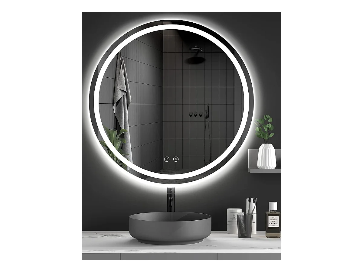 EMKE Specchio da bagno rotondo a LED con retroilluminazione, interruttore al tocco, antiappannamento - Diametro 70 cm Luce bianca fredda/calda/neutra