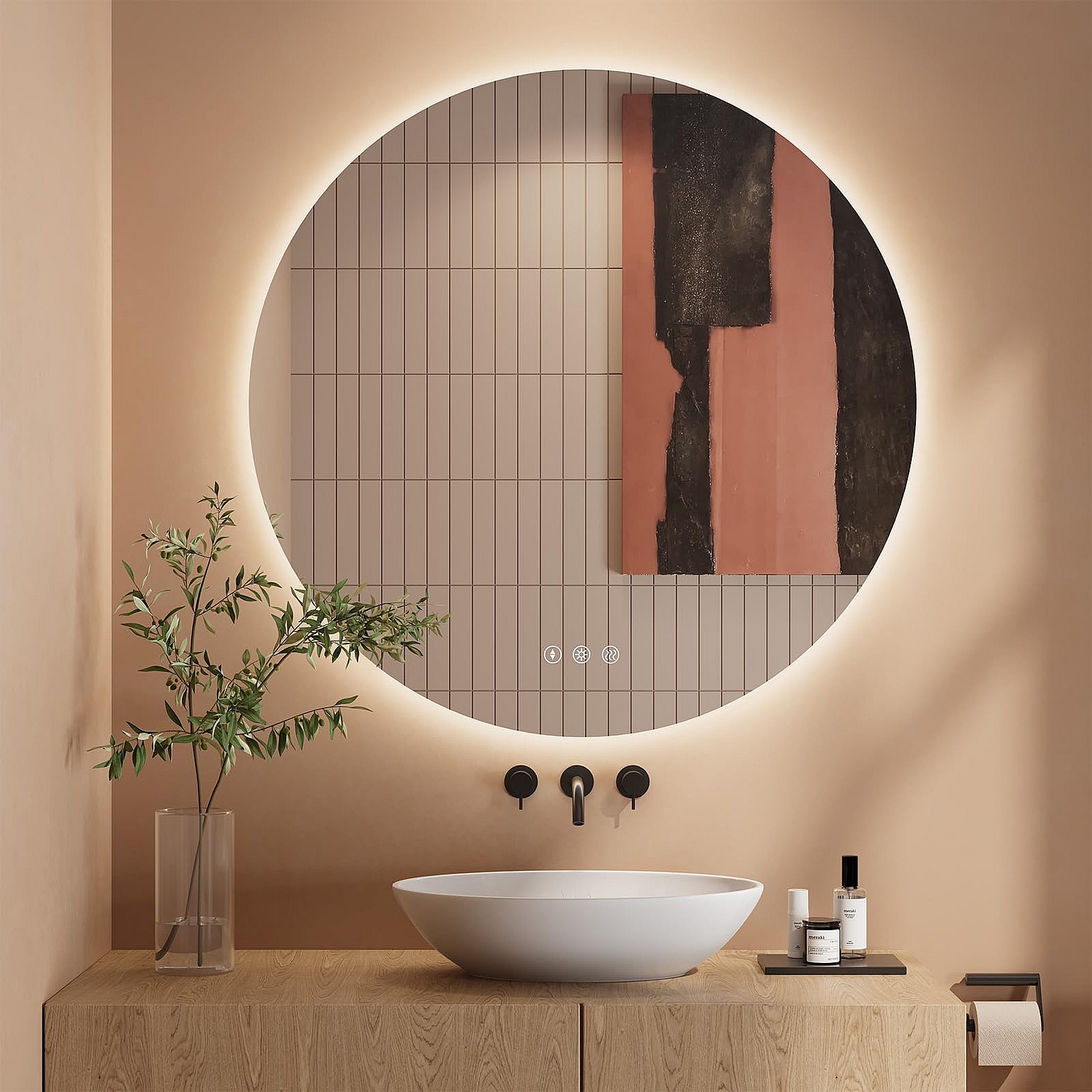 Specchio da bagno con illuminazione - Rotondo Ø80 cm - Specchio da bagno LED - con antiappannamento e 3 colori intercambiabili