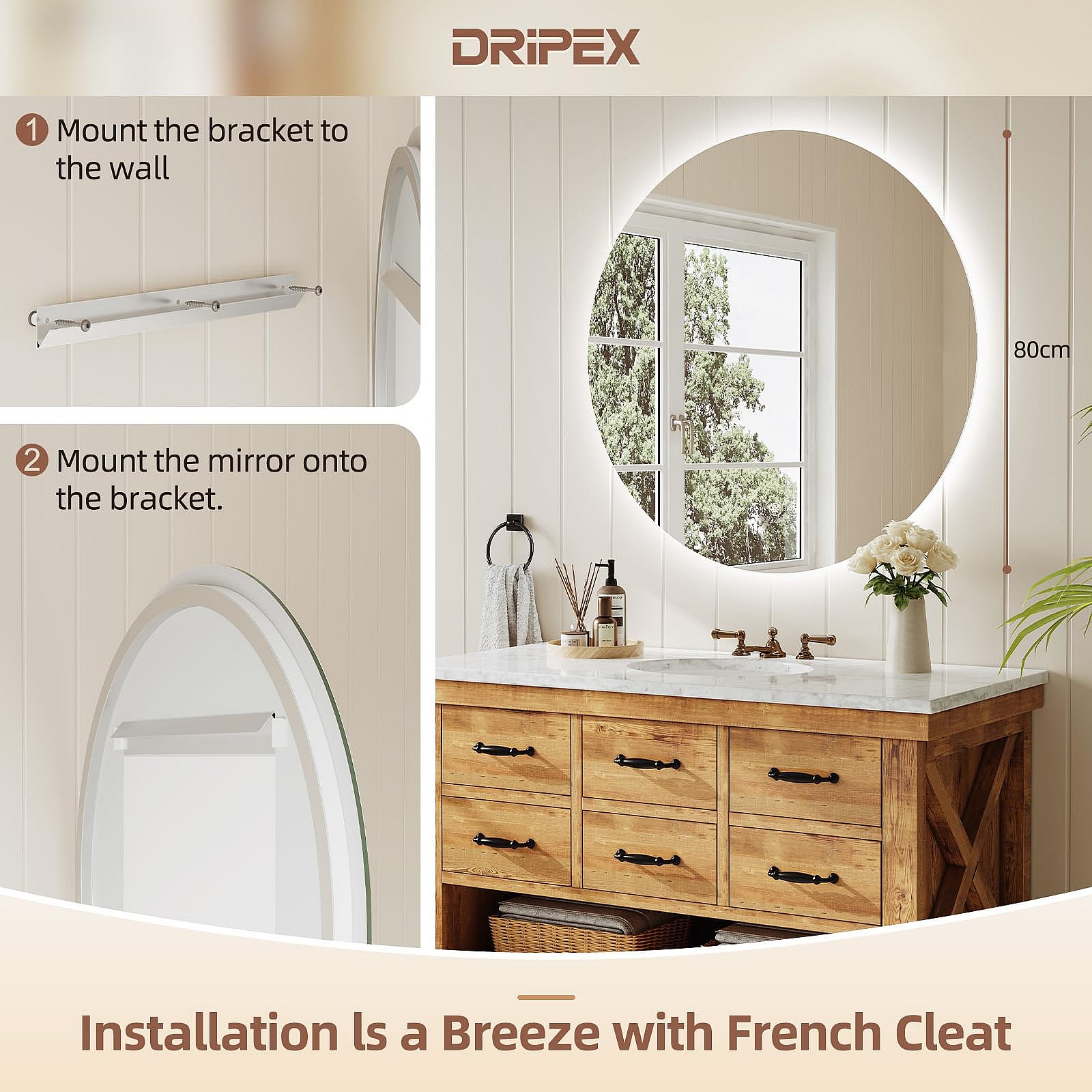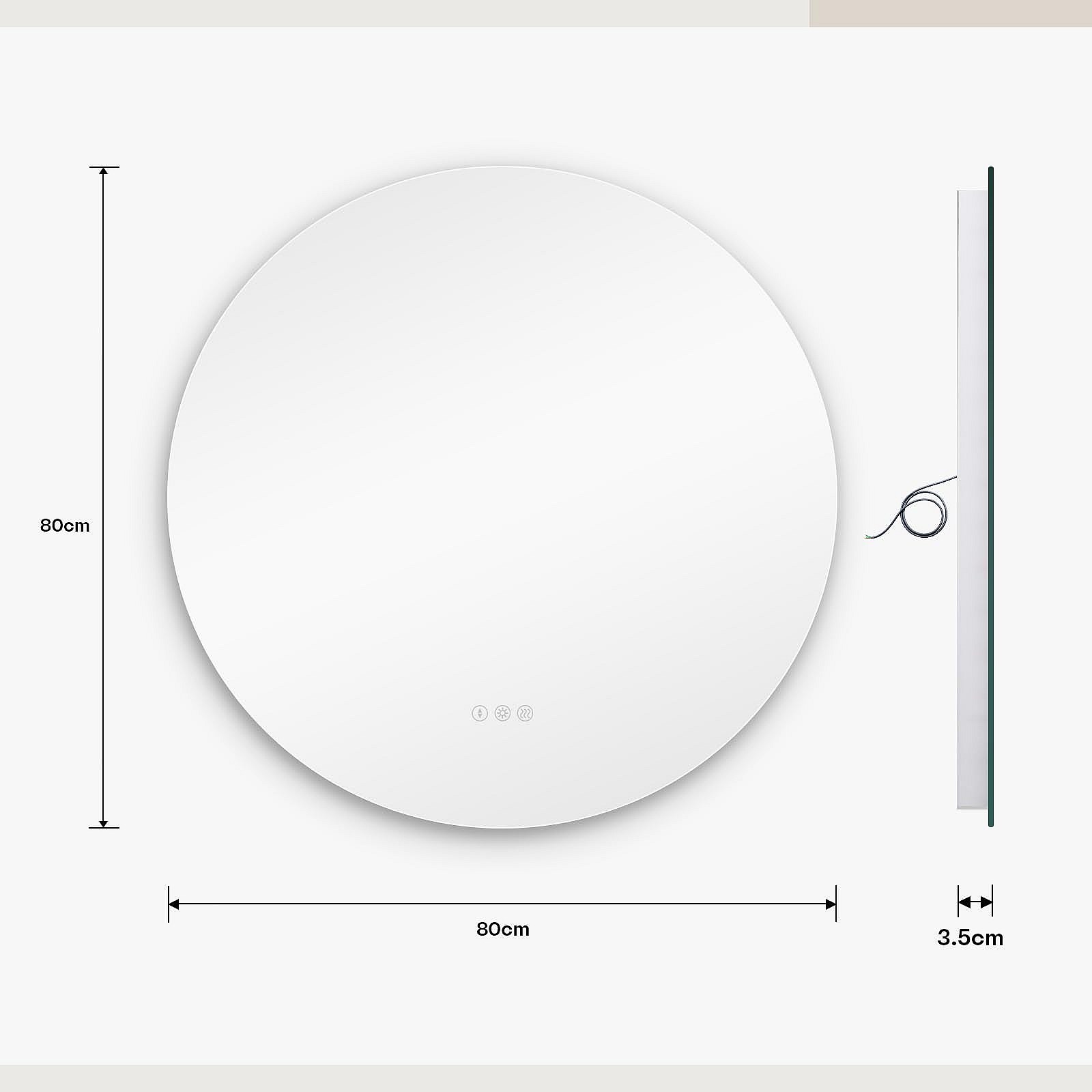 Specchio da bagno rotondo a LED da 80 cm, antiappannamento, 3 colori, dimmerabile, interruttore touch