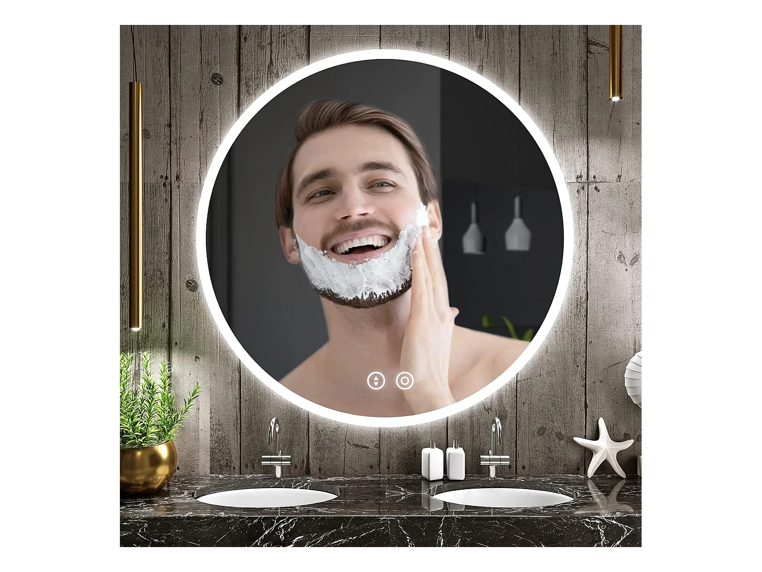 EMKE Specchio da bagno rotondo a LED con Interruttore a sfioramento, antiappannamento - Diametro 60 cm Luce bianca fredda (dimmerabile)