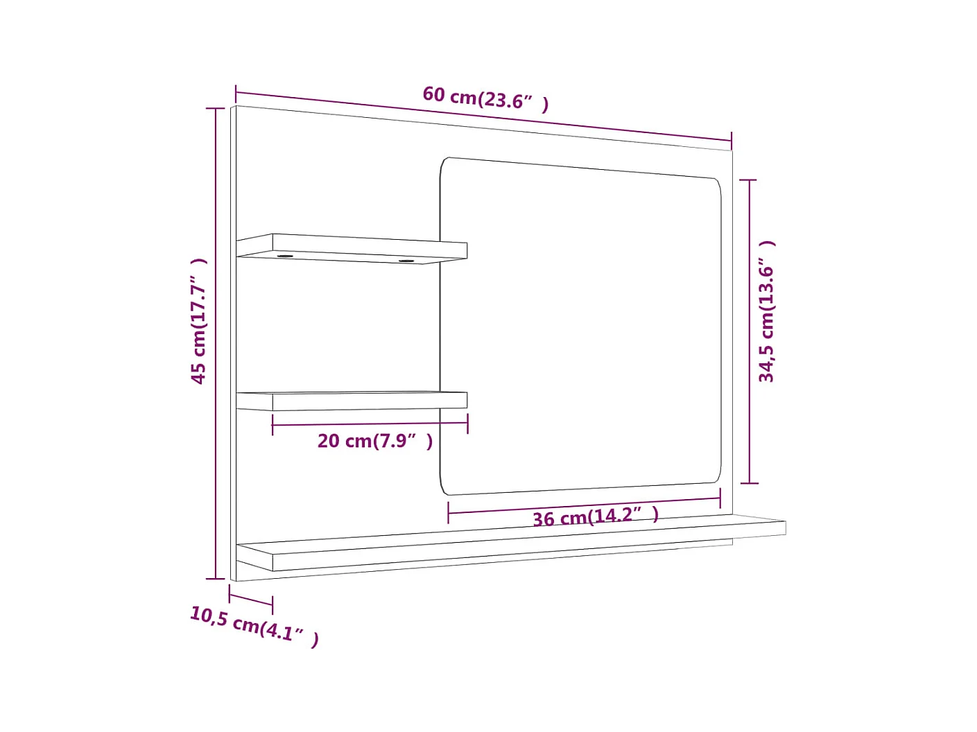 Specchio da bagno Sonoma Grey 60x10,5x45 cm in legno ingegnerizzato