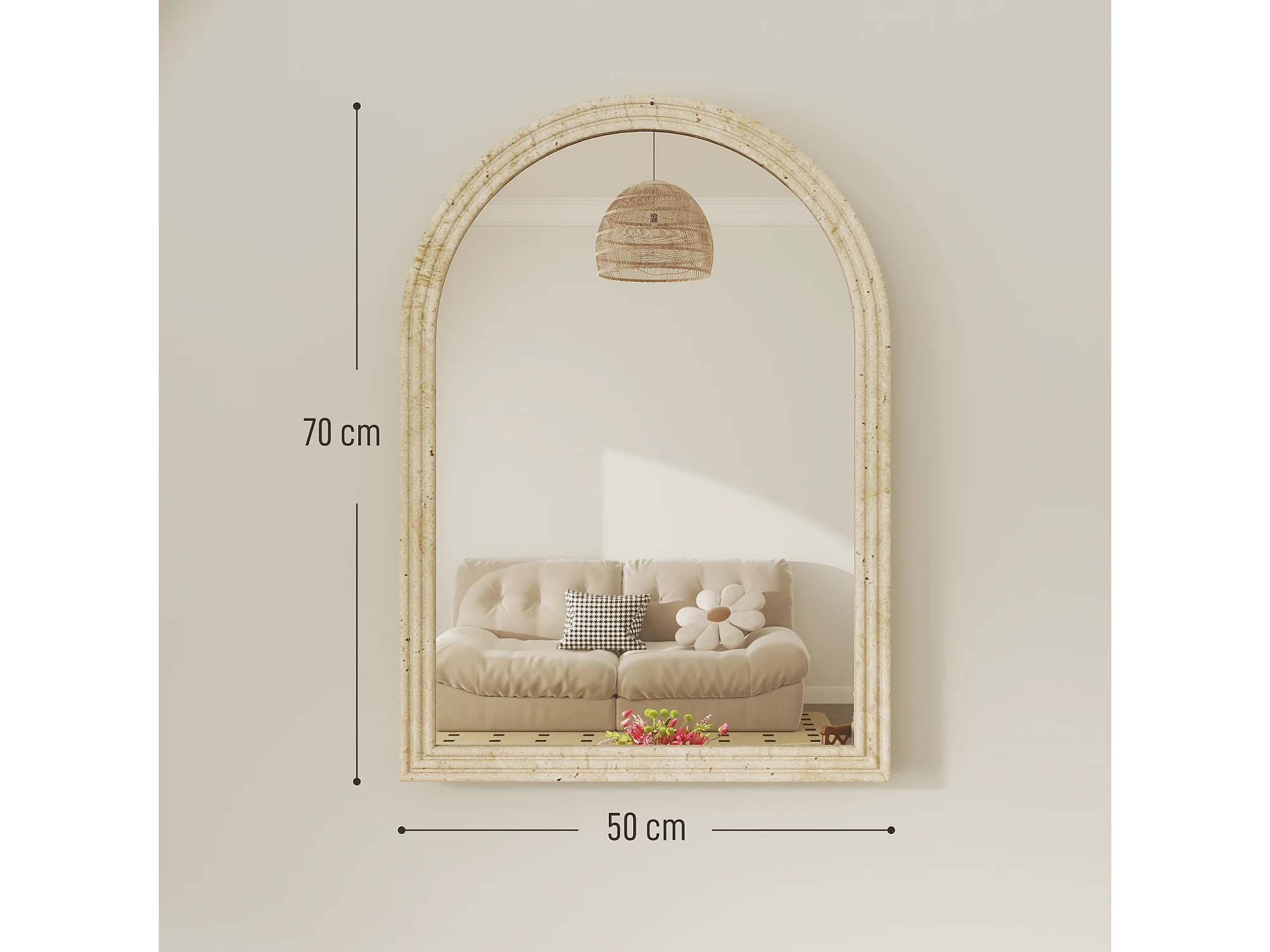 Specchio da parete ad arco con bordo scanalato 50x2x70 cm beige