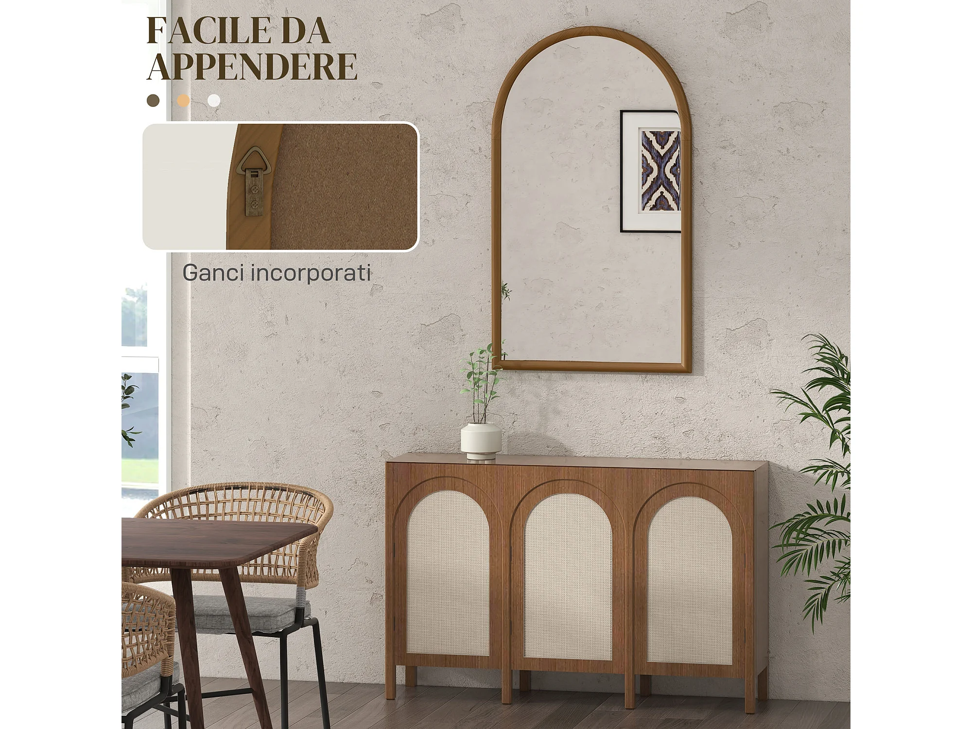 Specchio da parete ad arco con cornice in legno marrone scuro