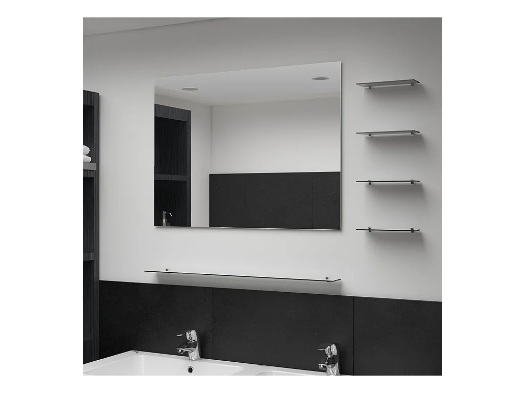 Specchio da Parete con Mensola 80x60 cm in Vetro Temperato
