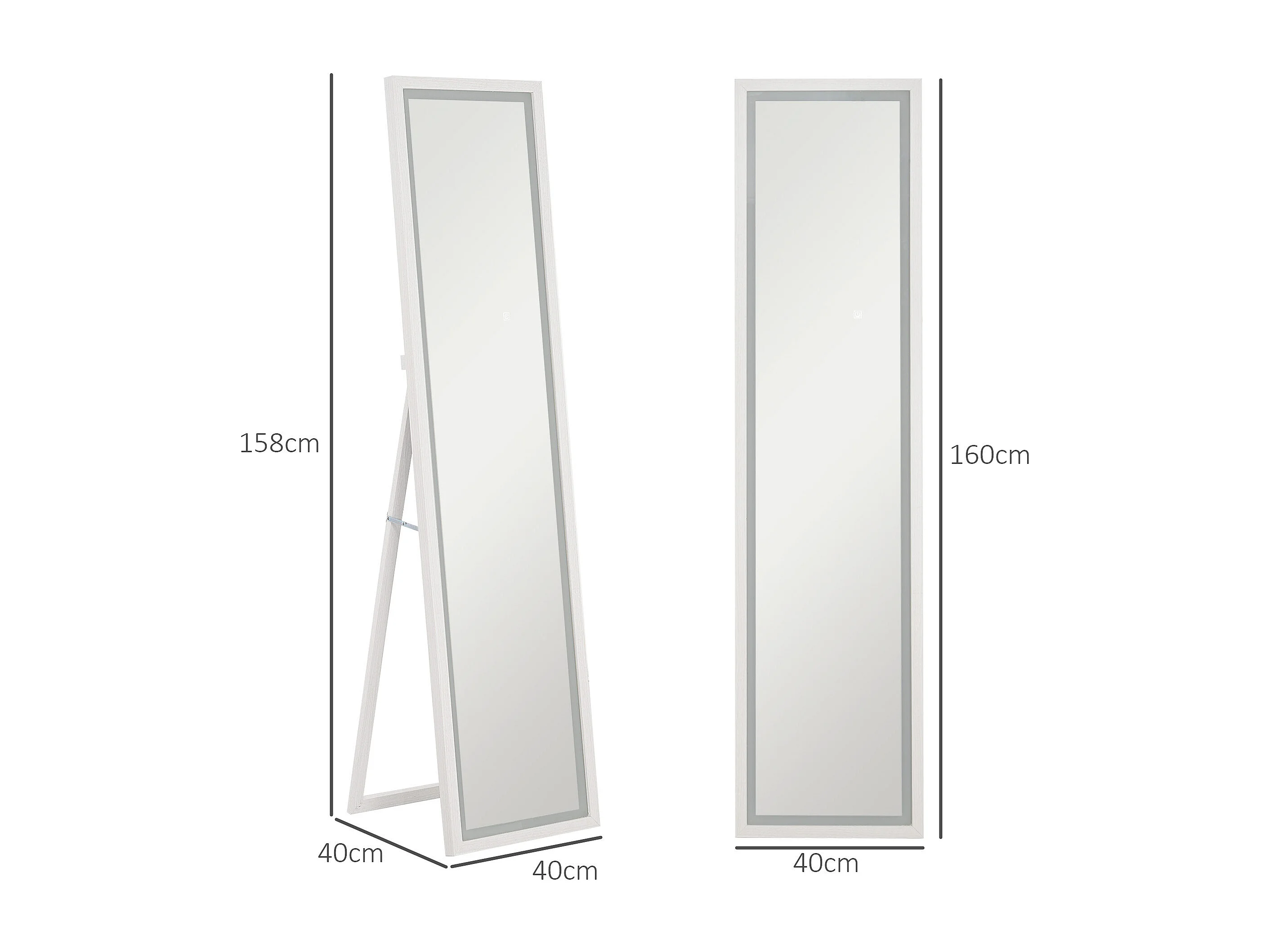 Specchio completo con illuminazione a LED, vetro infrangibile, bianco (40x5x160 cm)