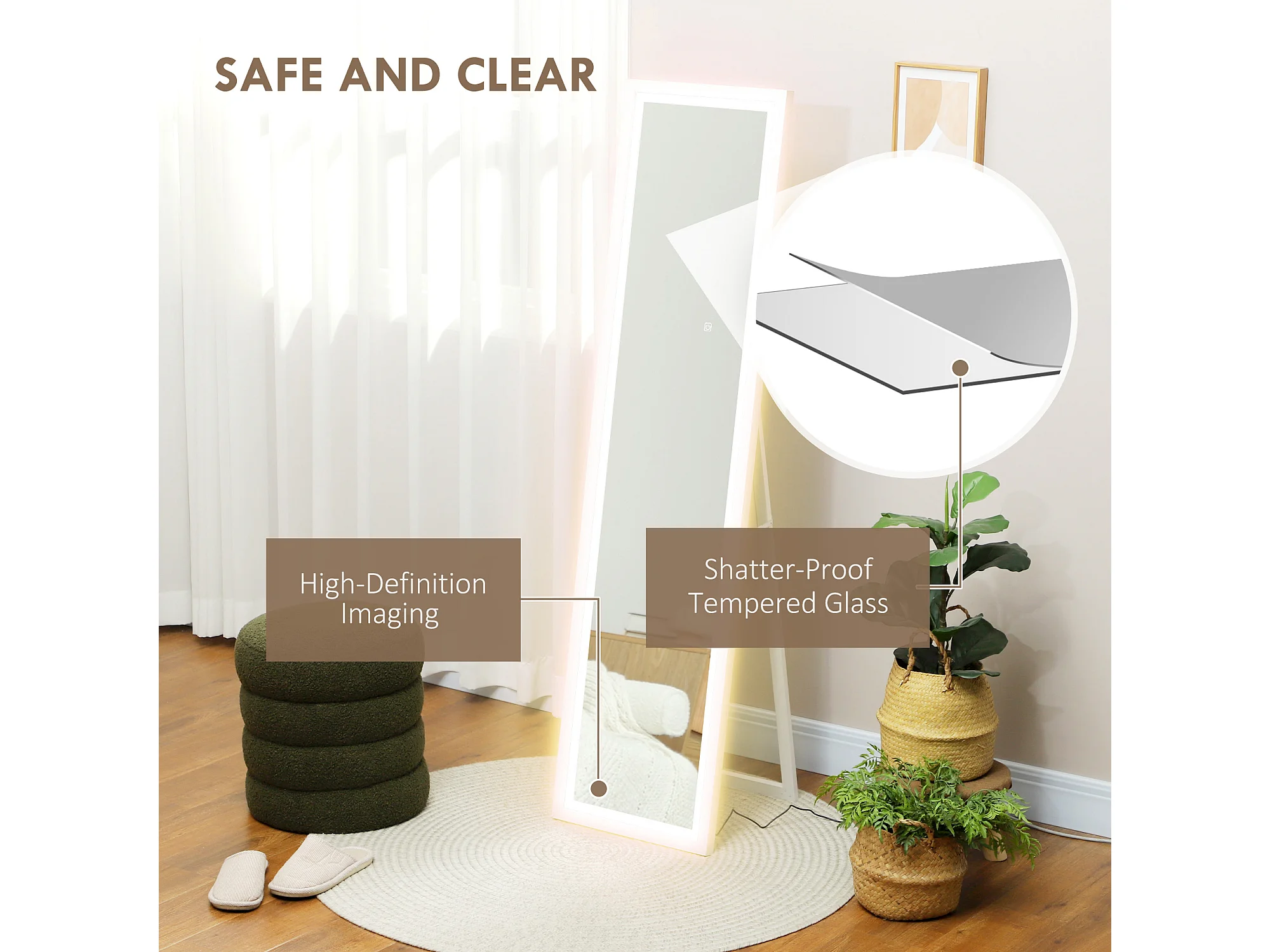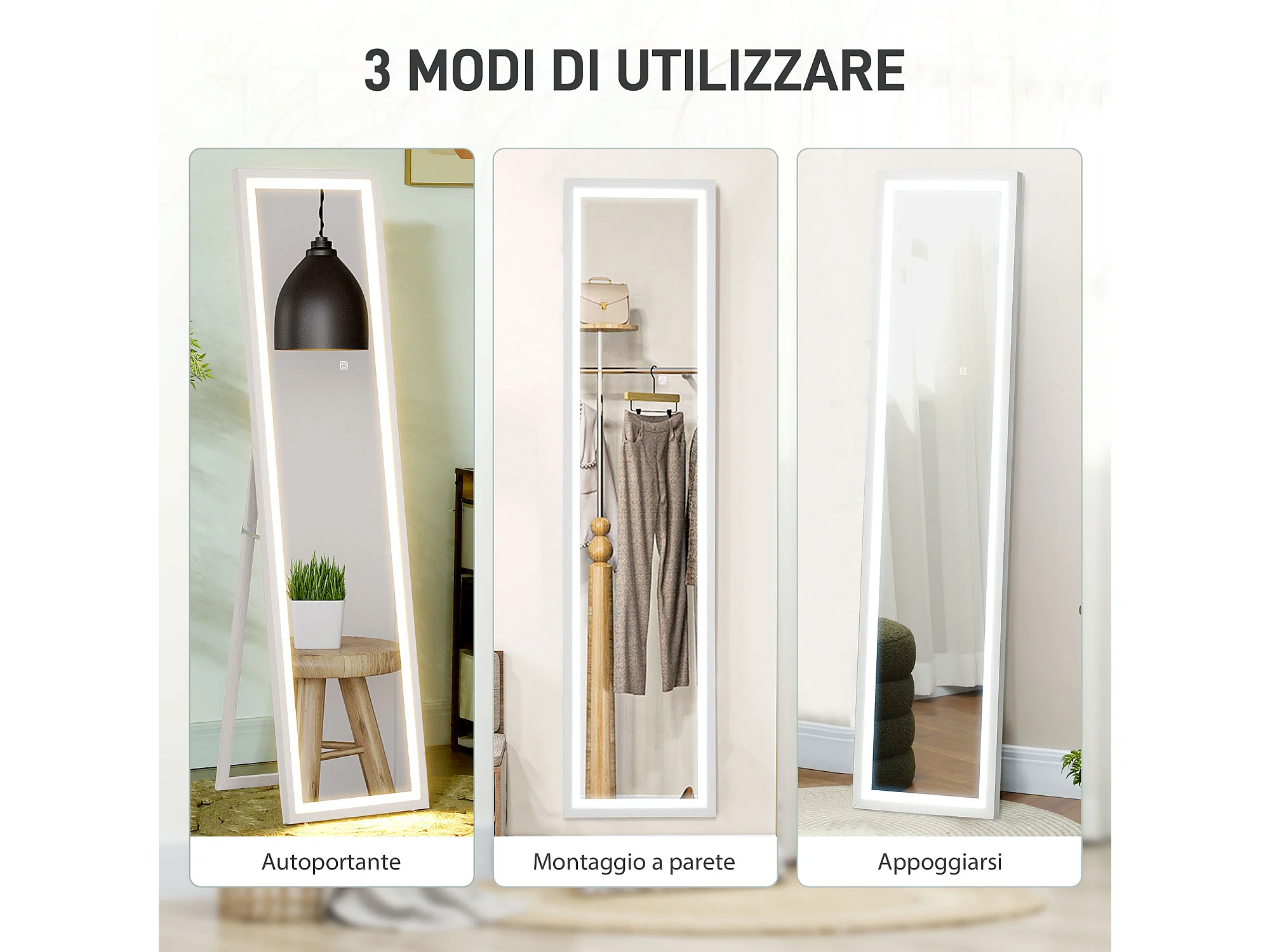 Specchio LED da terra 150x40cm, grande specchio da parete o da terra con illuminazione regolabile 3 colori, touch, ideale per camera da letto o soggiorno, bianco