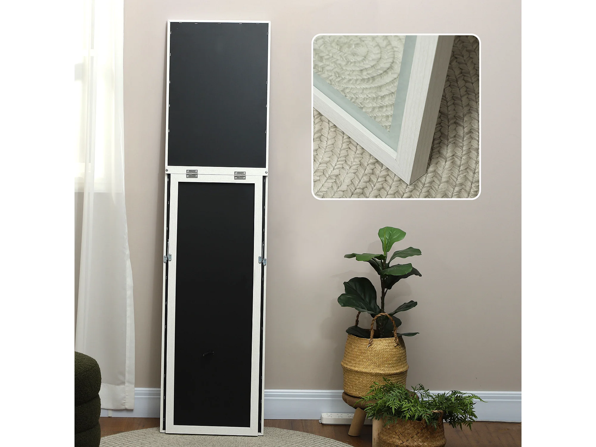 Specchio a figura intera con supporto richiudibile in mdf vetro bianco