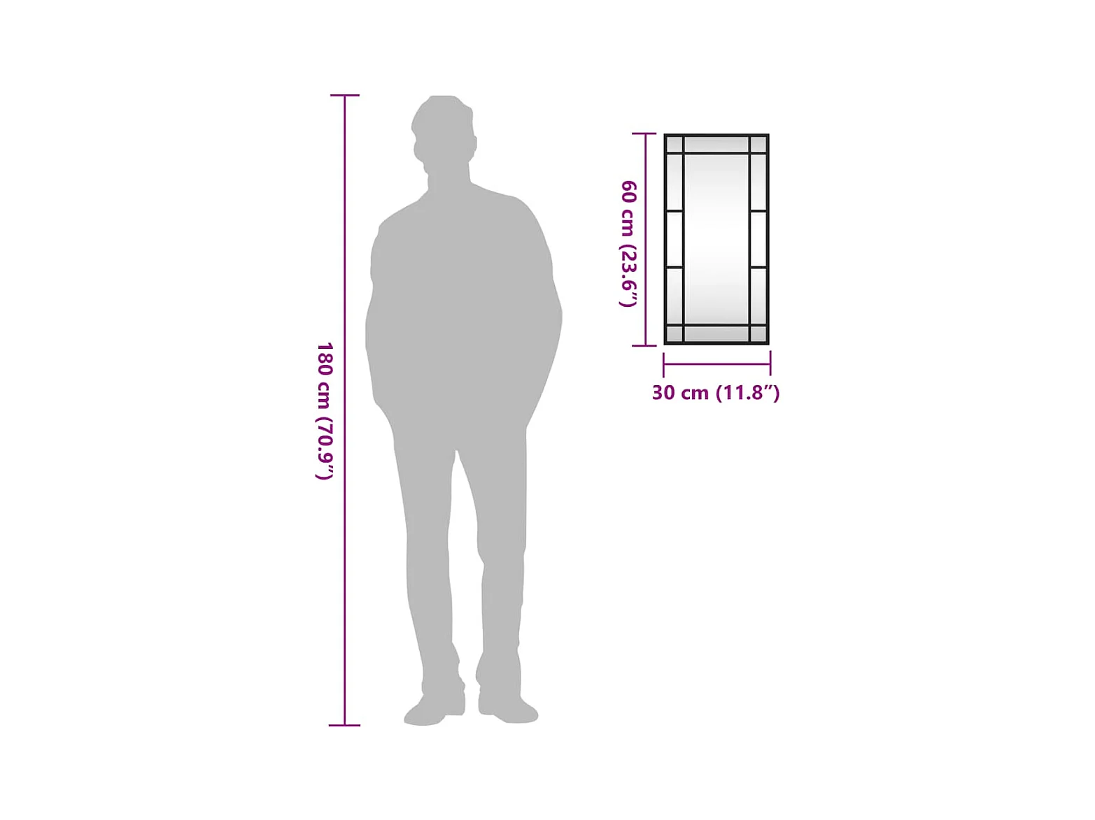 Specchio da Parete Nero 30x60 cm Rettangolare in Ferro