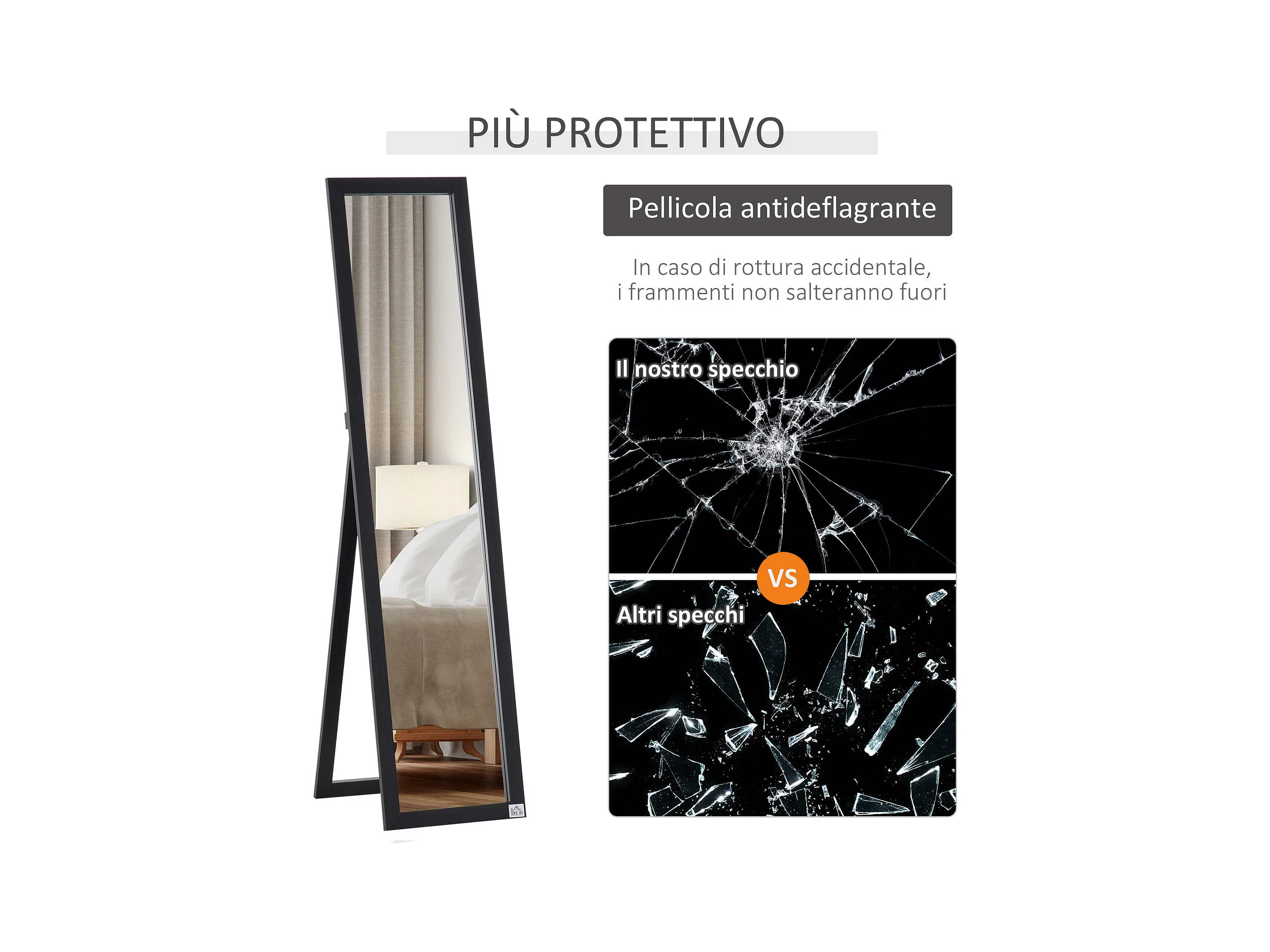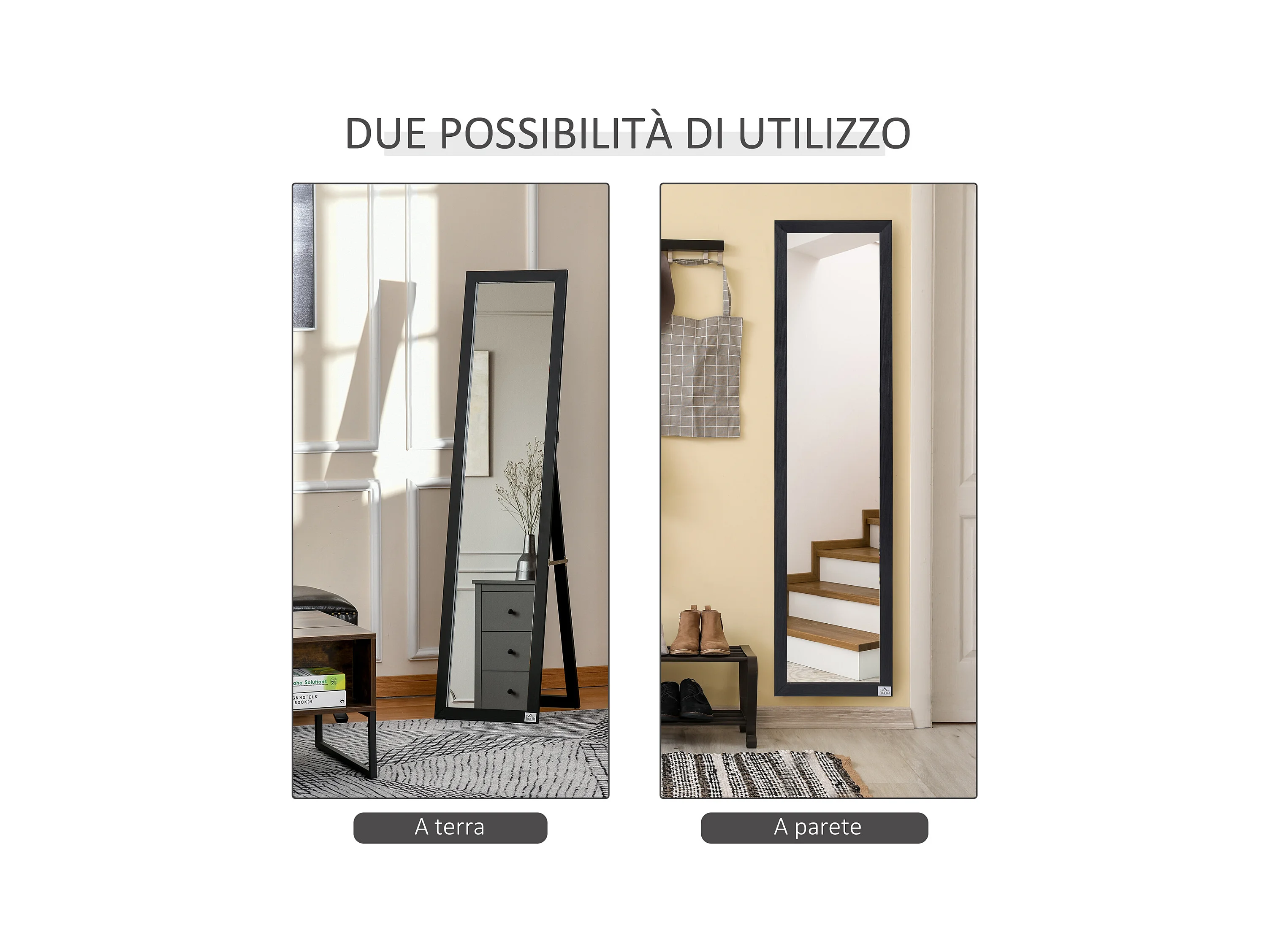 Specchio da terra 162x53 cm, cornice in alluminio nero, specchio da parete moderno da appoggiare o appendere