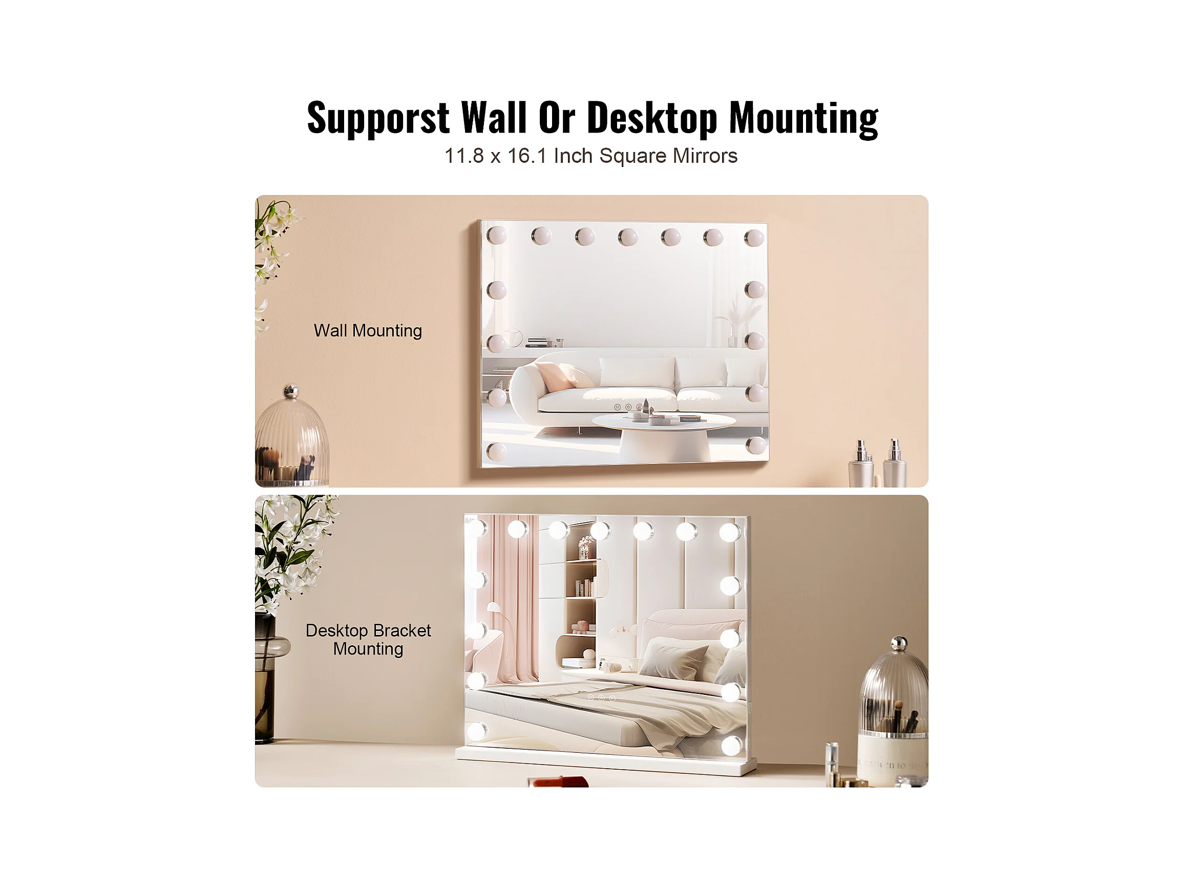 Specchio da Trucco SucceBuy 41 x 30 cm, Bianco, Specchio di Cortesia in Stile Hollywood con Luci