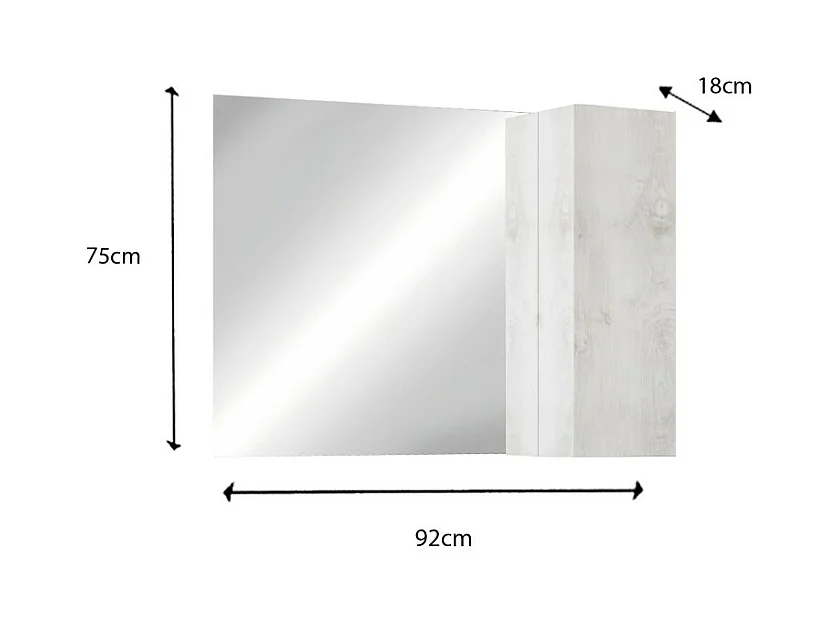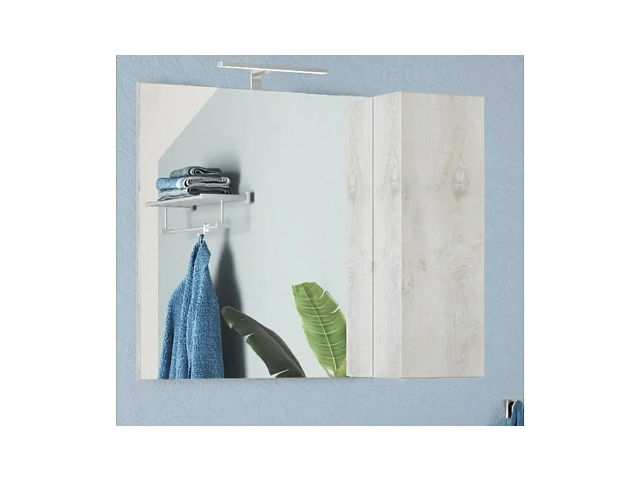 Specchio design con vano portaoggetti, 92x75 cm, collezione ISORA, colore bianco effetto legno
