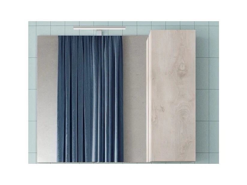 Specchio design con vano contenitore, 92x75 cm, collezione BURA, colori bianco lucido e rovere chiaro.