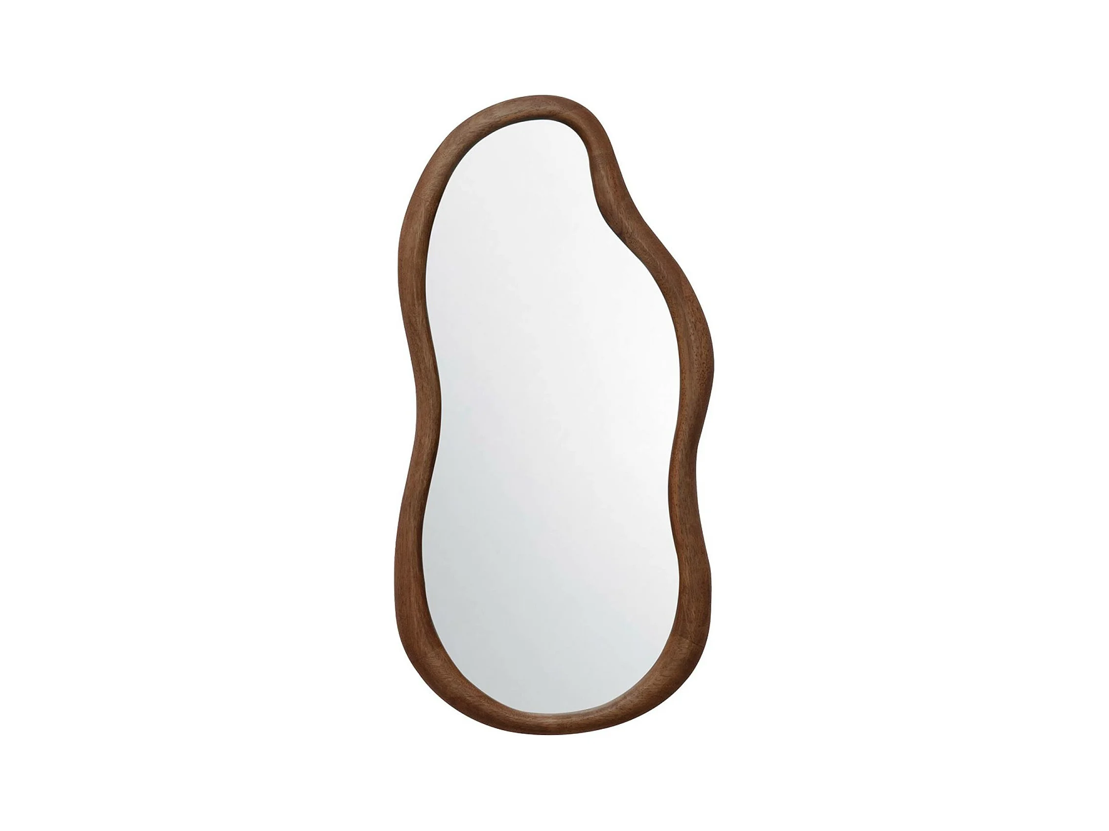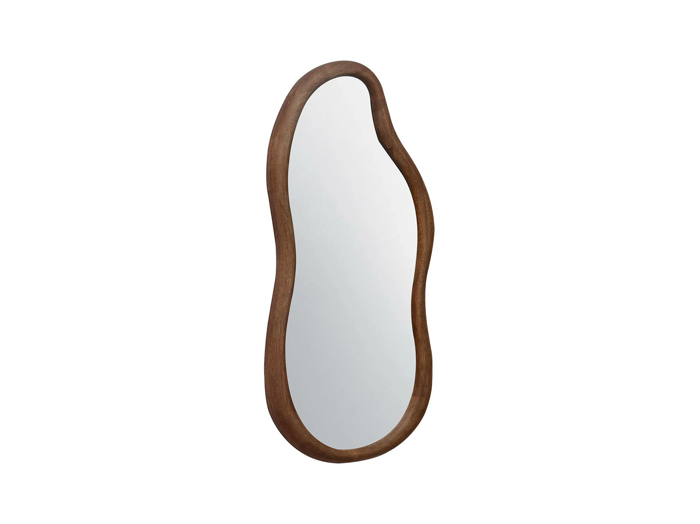Specchio organico in mindi massello finitura noce 75x60 cm
