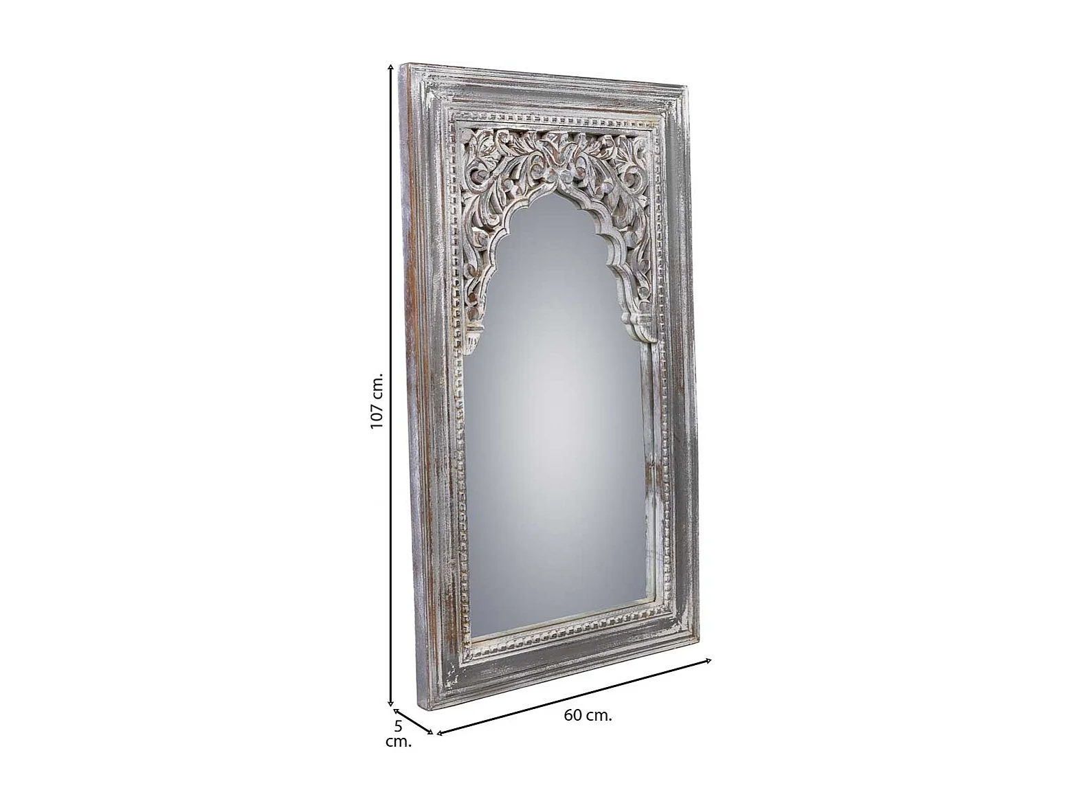 Specchio in legno invecchiato bianco 60x5x107