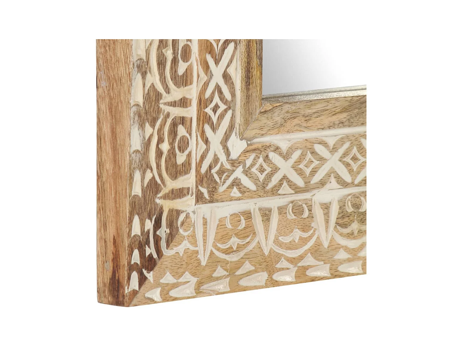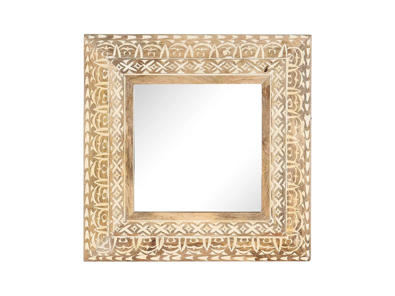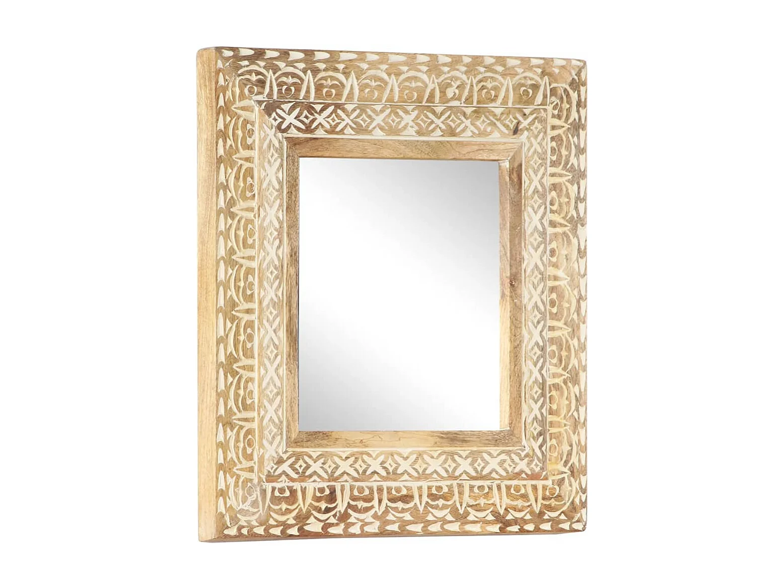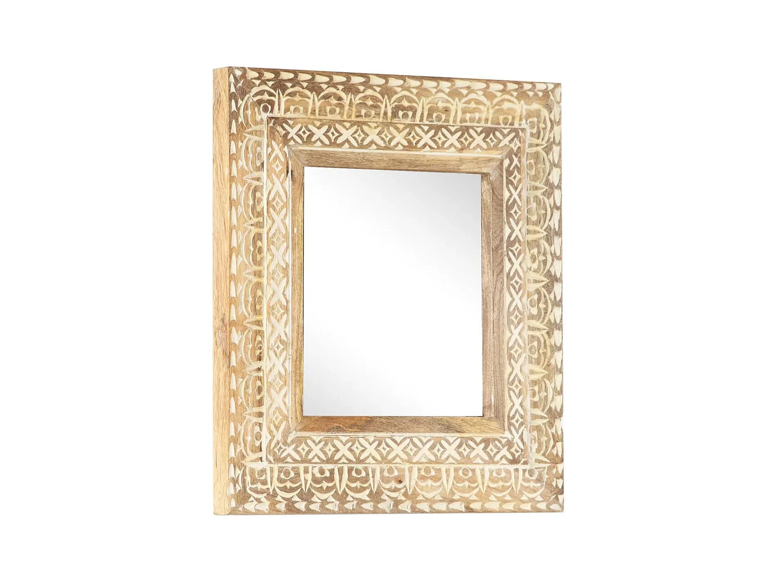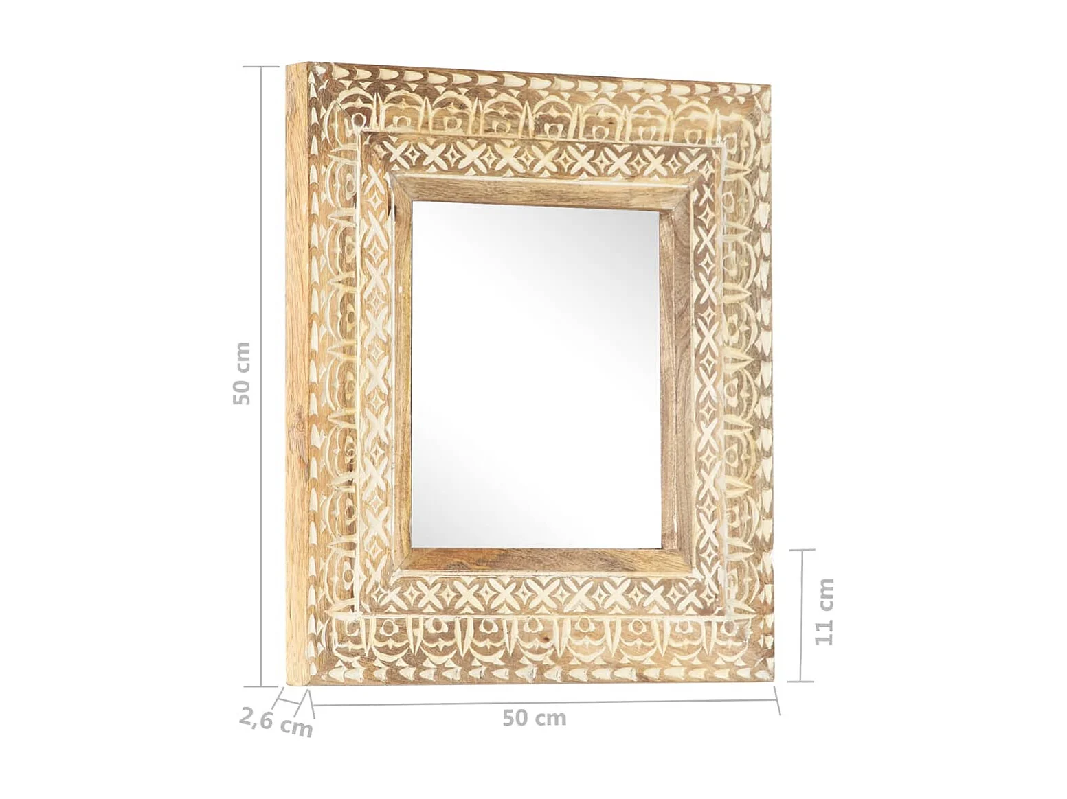 Specchio Intagliato a Mano 50x50 cm in Legno Massello di Mango