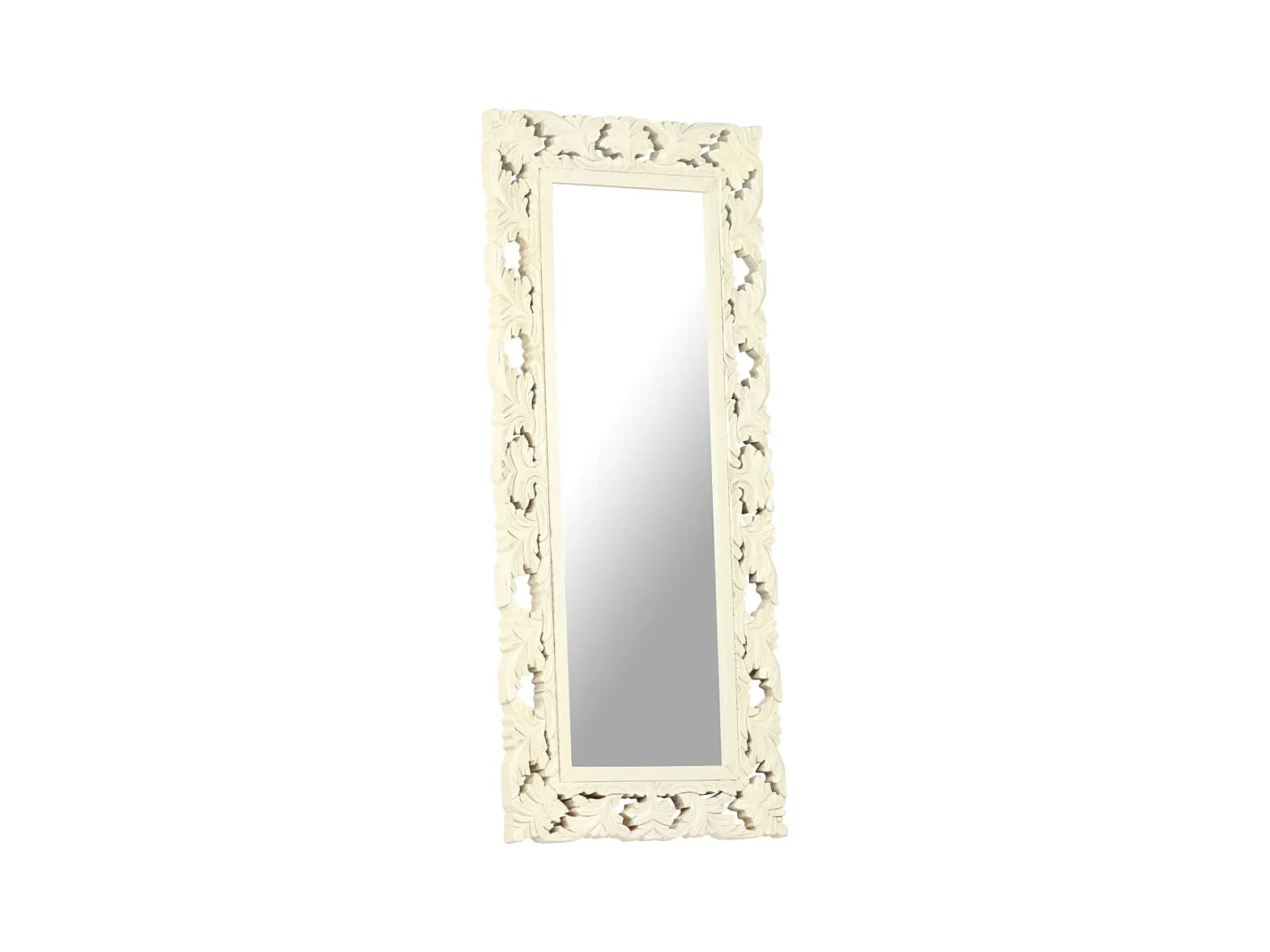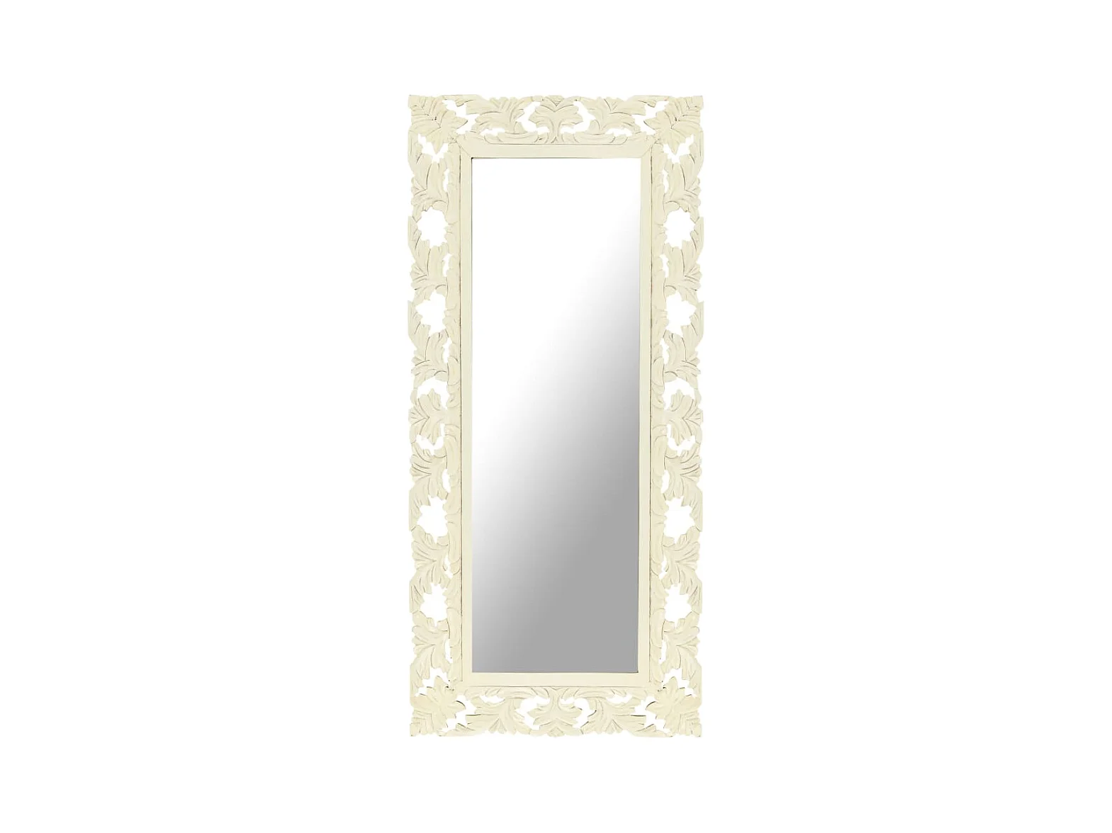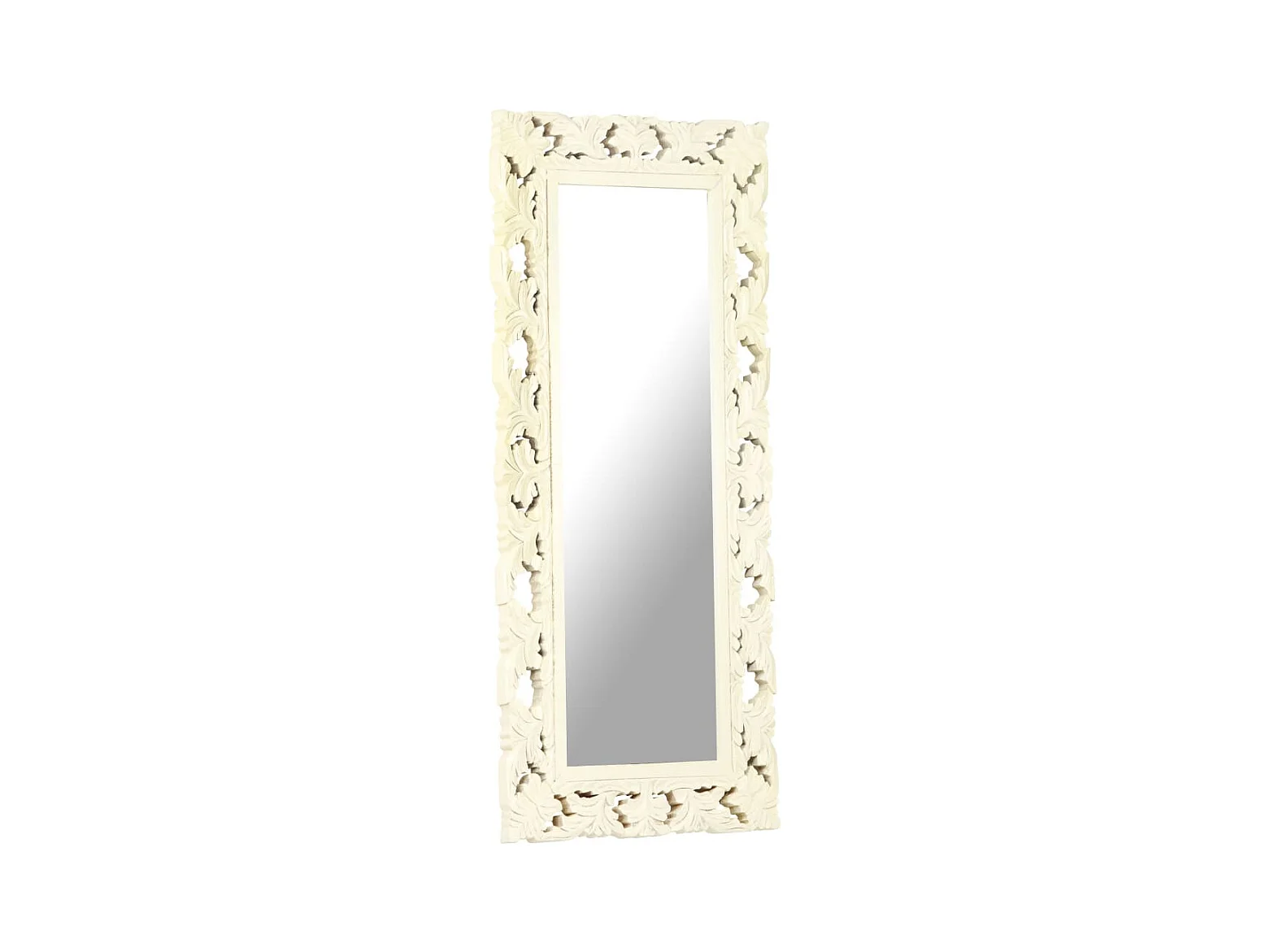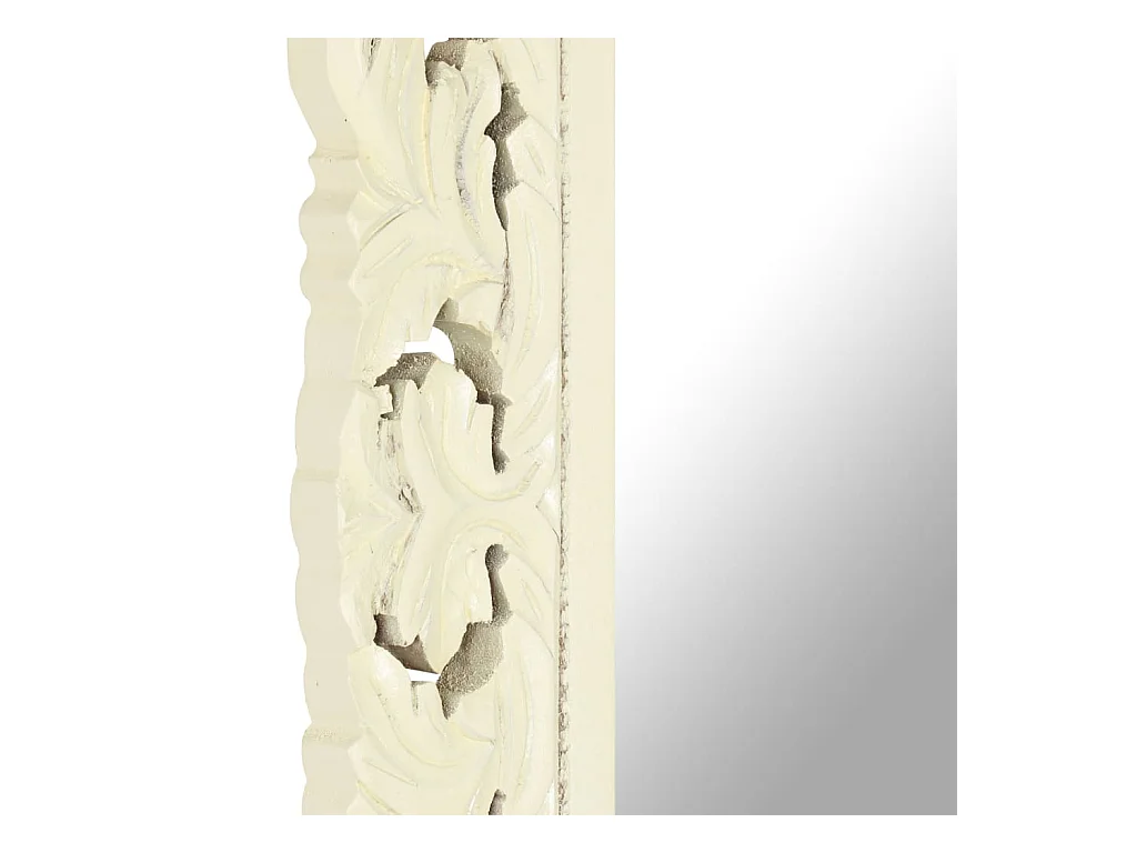 Specchio Intagliato a Mano Bianco 110x50cm in Massello di Mango