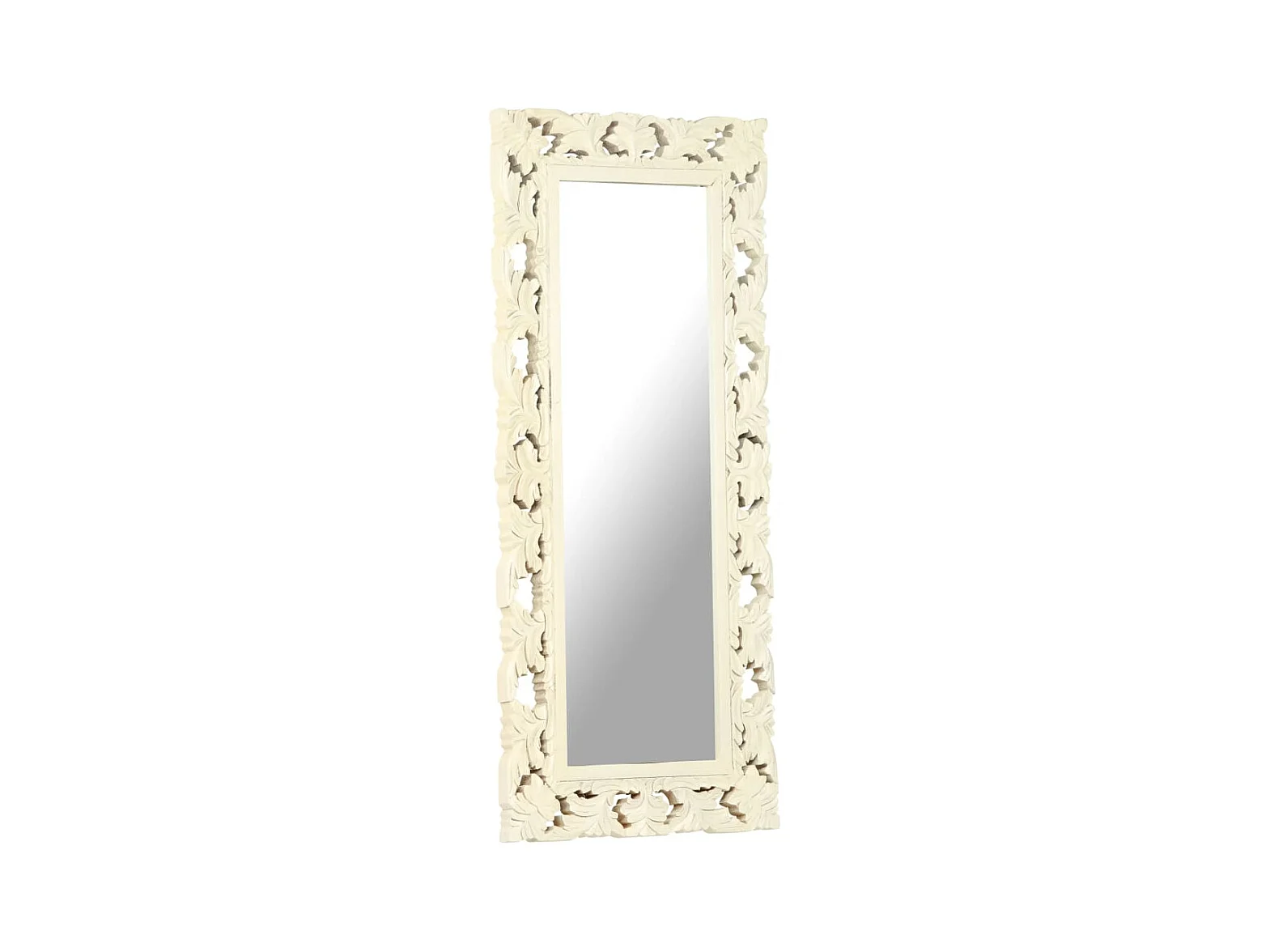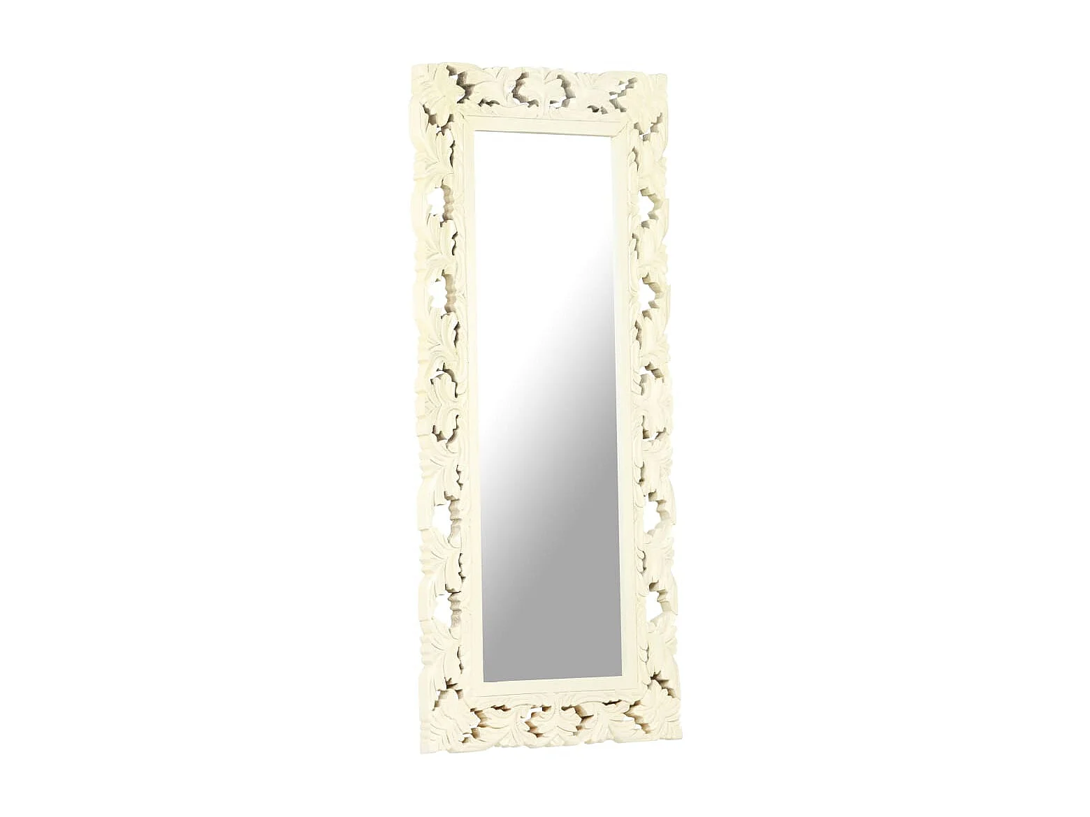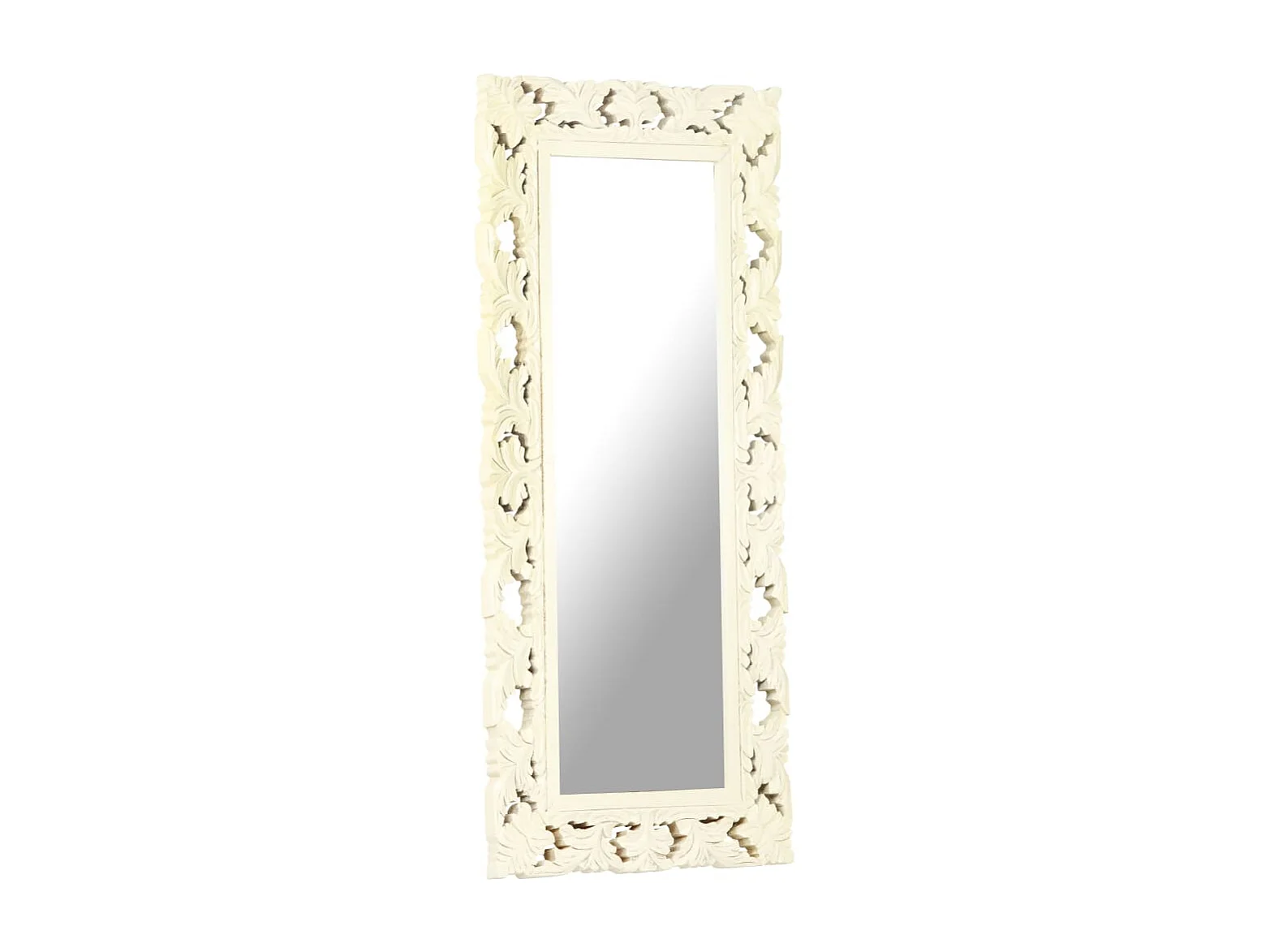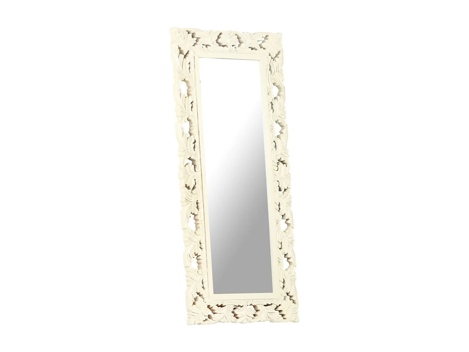 Specchio Intagliato a Mano Bianco 110x50cm in Massello di Mango